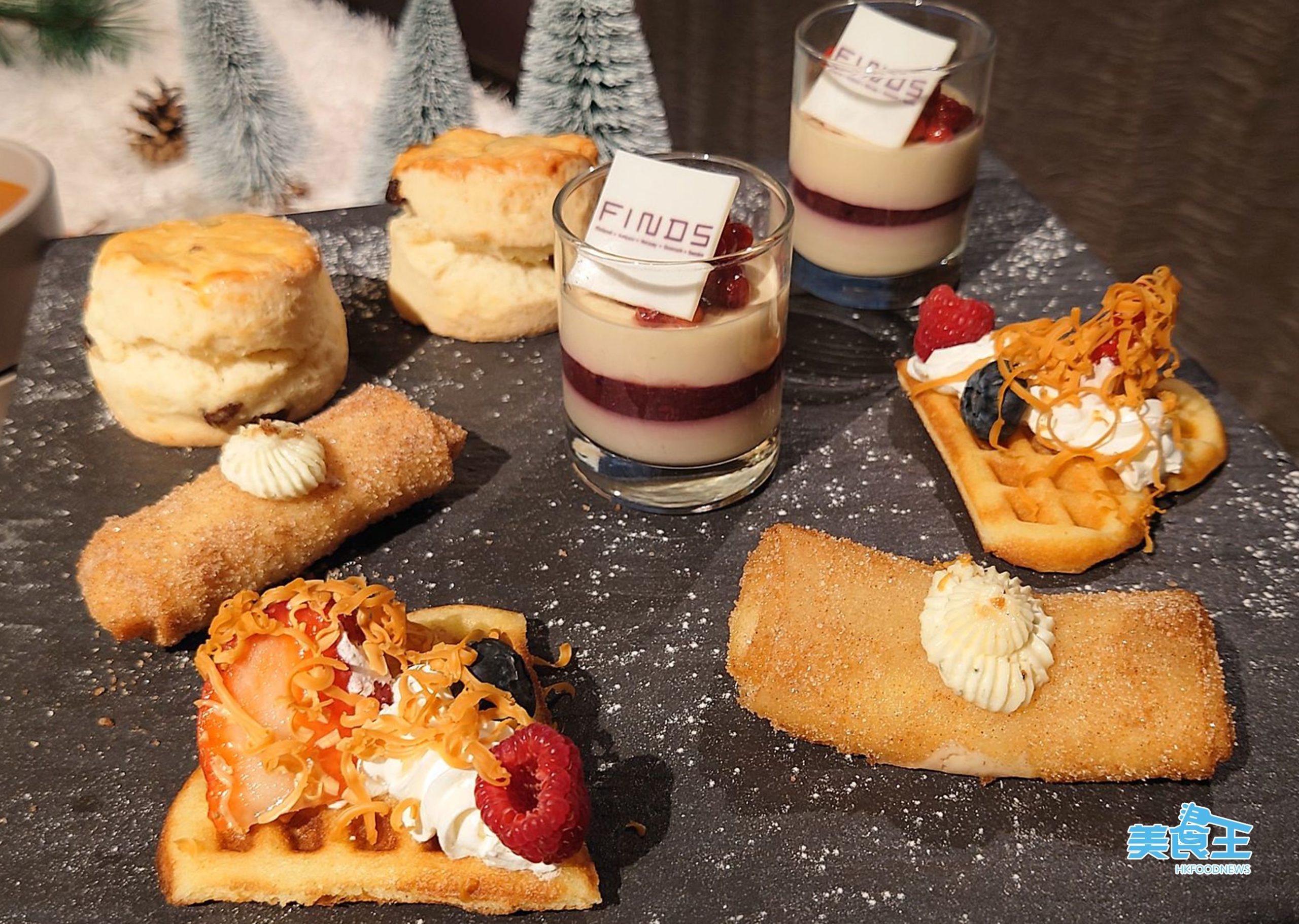 為配合芝士火鍋主題,FINDS 主廚還巧手製作了一些清新輕盈、甜而不膩的甜點,當中包括在自家製心型窩夫及酸甜雜莓餡料上再配上席前刨絲的焦糖芝士,盡是視覺、味覺的享受。另以春卷皮包裹取代撻或麵包的香梨忌廉芝士肉桂春卷,亦是誘人滋味。北歐著名特產越橘莓配上香甜幼滑的越橘莓焦糖芝士奶凍,以及英式鬆餅配自家製草莓果醬及凝脂忌廉,亦令人吃得停不了口。