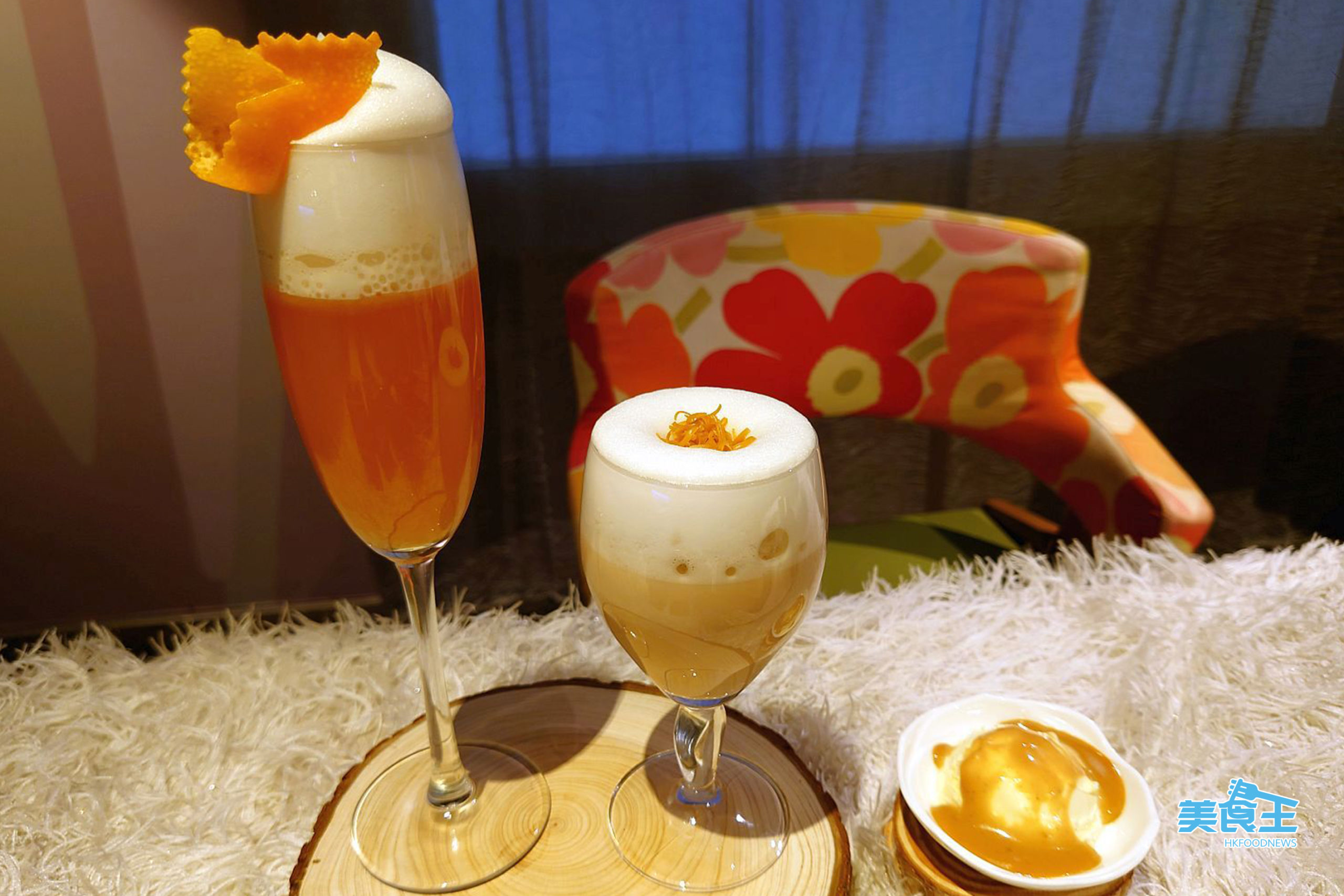 FINDS 亦焦糖芝士完美融入創意特飲,先是以雞尾酒混合冧酒、氣泡酒、黑櫻桃利口酒、西柚苦味酒及西柚汁,加上輕盈的西柚泡沫作點綴的「Autumn Spirit 秋月紅光」(加購價 $88、原價 $108),酸甜交錯,味道清新又帶有多層次口感,正好減輕芝士的飽膩感。如不喝酒的,不妨來杯以茶香味較濃郁的黑茶作基底,配以鮮奶、海鹽及芝士泡沫製作而成「Butter Cup 芝味暖日」(加購價 $58、原價 $78),當中的芝士泡沫「奶蓋」綿滑香濃,甜而不膩,更可選擇凍飲或熱飲。