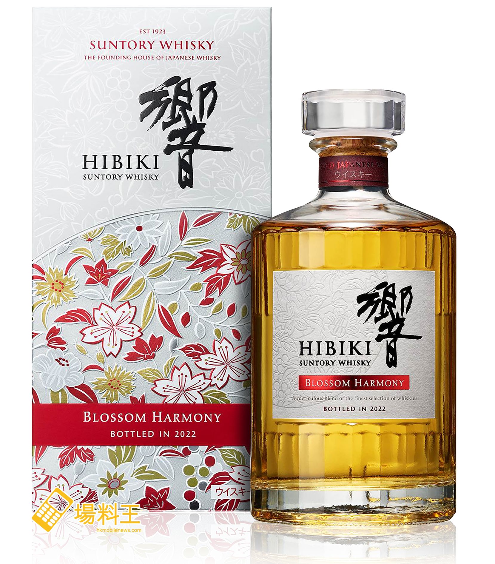 限量版 HIBIKI BLOSSOM HARMONY 2022 酒精濃度為 43%,混合調和來自三得利山崎、白州、知多蒸餾所中嚴選多樣麥芽及穀物威士忌,再把熟成的威士忌放入櫻花木桶中釀造,使製成的威士忌帶有淡淡櫻花香,在清爽口感之後會有豐富融和的餘韻。