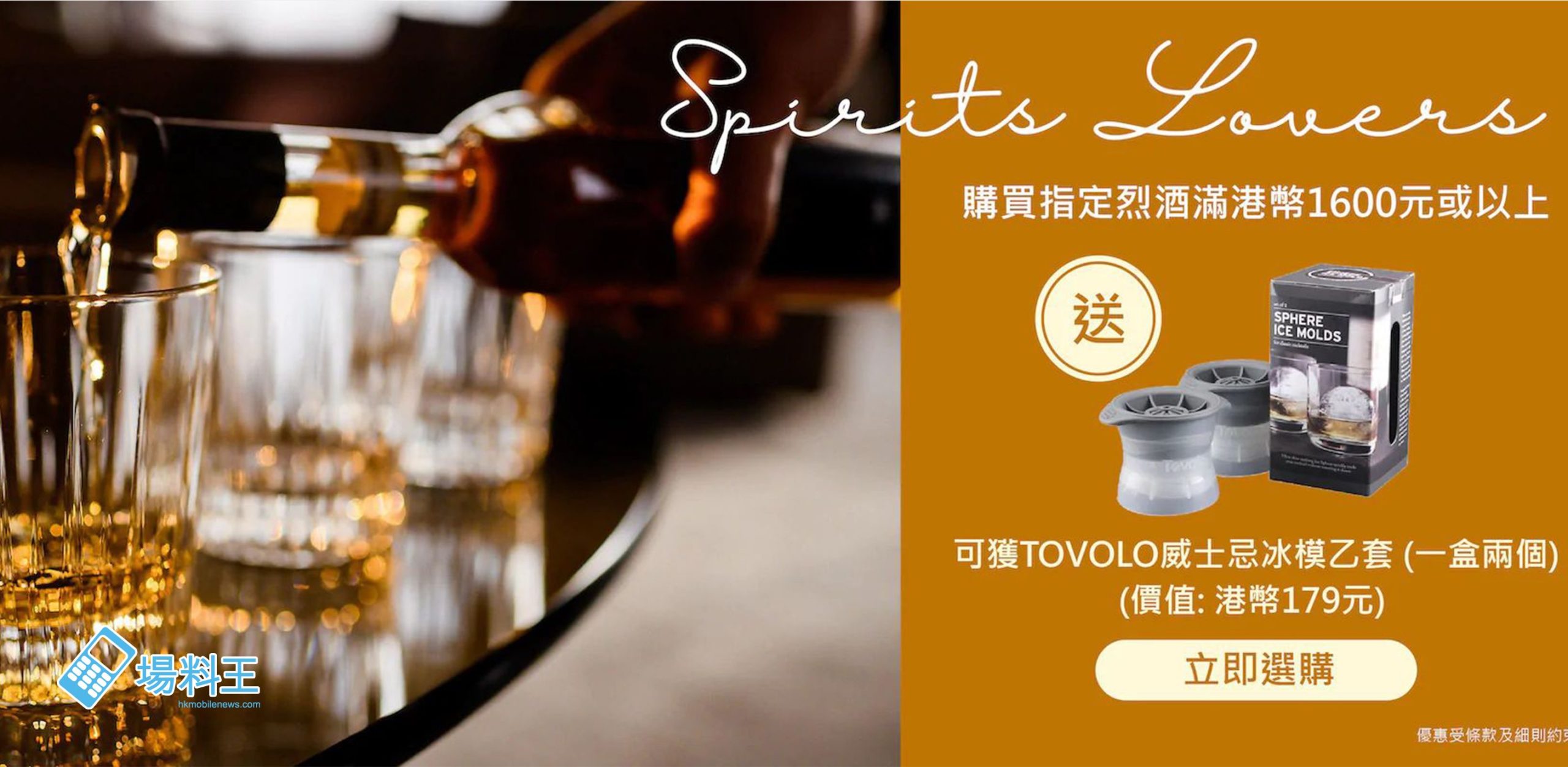 日,購買任何烈酒 (Spirits) 滿 $1,600 (不包括是次限量版 Hibiki Blossom Harmony 2022),即可獲 TOVOLA 威士忌冰模乙套 (一盒兩個)。