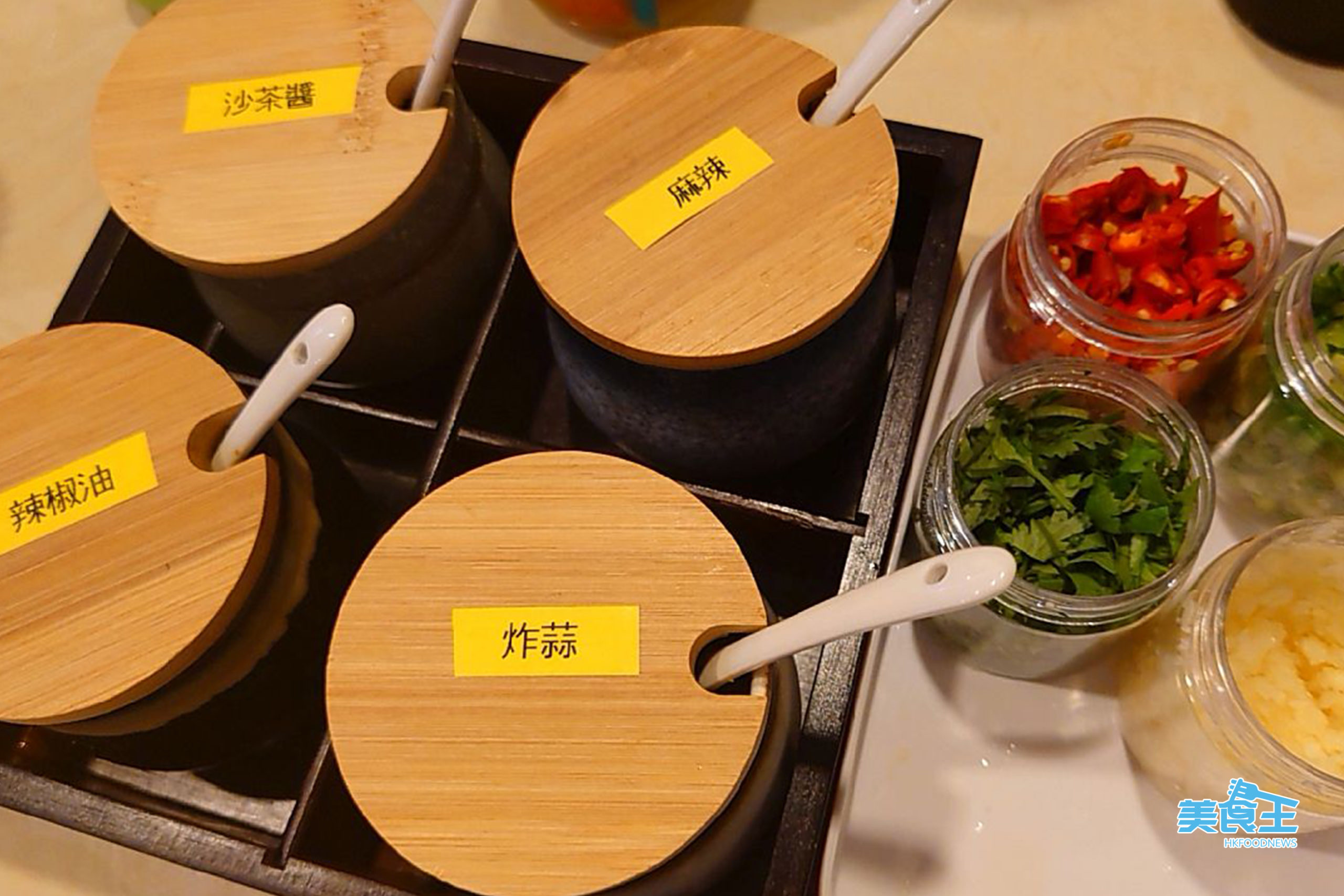 至於火鍋的調味料方面,提供一般的沙茶醬、辣椒、辣椒油、黃金蒜、生蒜、蔥花、莞茜等,不過由於店內的食材質半都很不錯,所以建議單以雞湯加一小點調味料作醬料便可,或是直接吃食材的鮮味,更好。