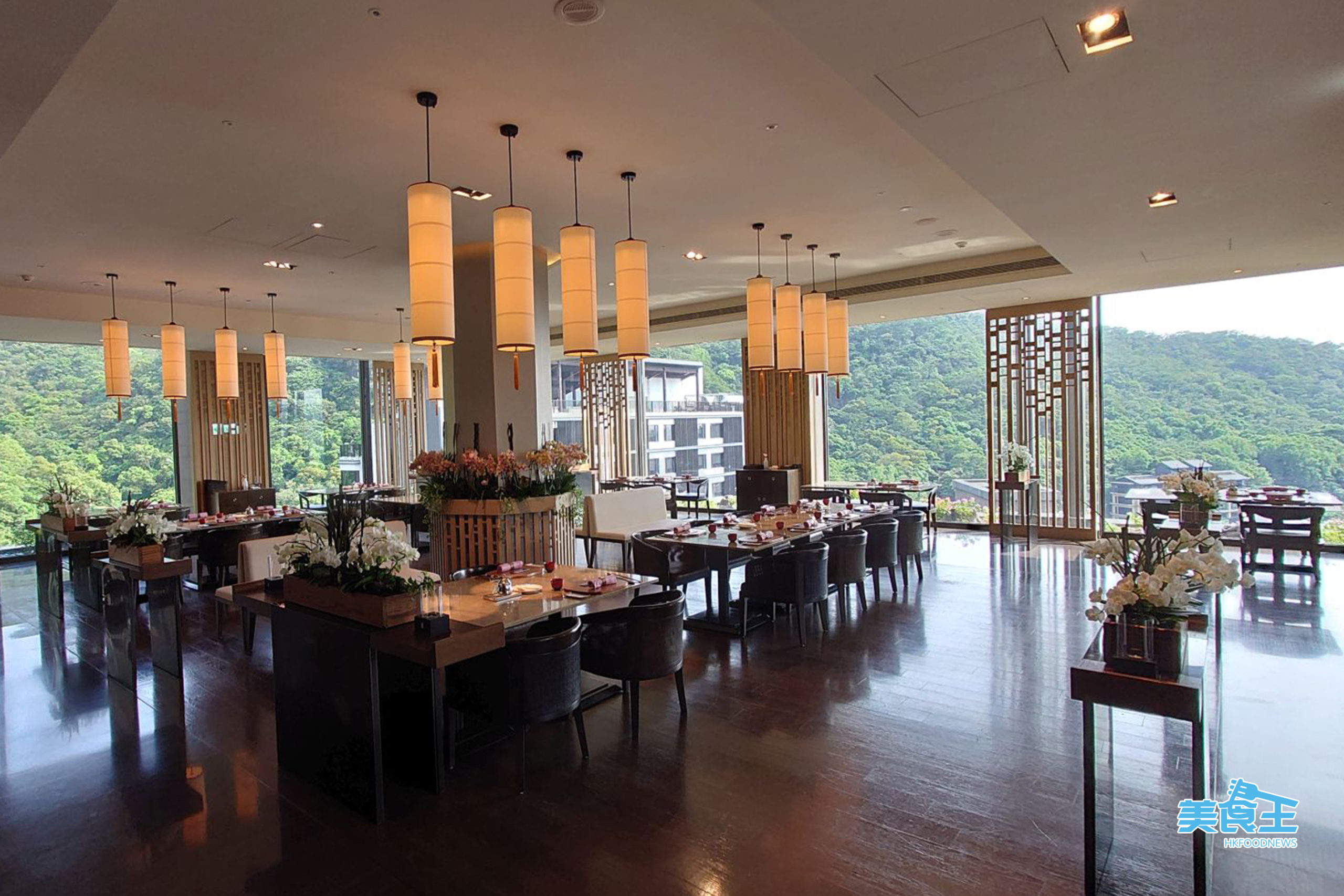 北投麗禧溫泉酒店位處北投最高點,其中菜廳雍翠庭三面環山,而 270 度的落地玻璃把綠意盎然的景緻盡收眼底。但由於樓底頗高,空間闊落,令人全沒侷促感;配搭餐廳中央的八角廊柱、頂上的白色長形燈罩等,透出一分東方風韻的美感,在這優雅的環境下用餐,心情舒泰。