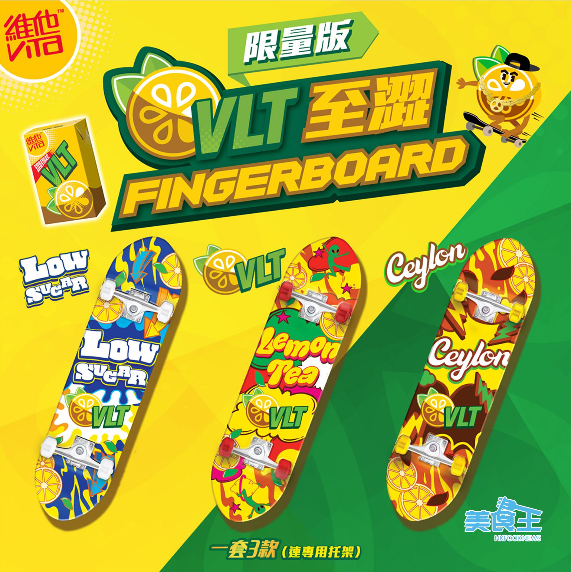 同場加映限量版 VLT 手指滑板連專用托架,唔單止有得玩,仲可以當成擺設,展現你嘅街頭風格!好想擁有晒佢地 ? 即日起至 6 月 29 日,凡於指定商店,購買維他檸檬茶/菊花茶/氣泡茶系列滿一定金額或數量即可換領 VLT 至澀 fingerboard 盲盒乙件!一套三款,數量有限,換完即止。