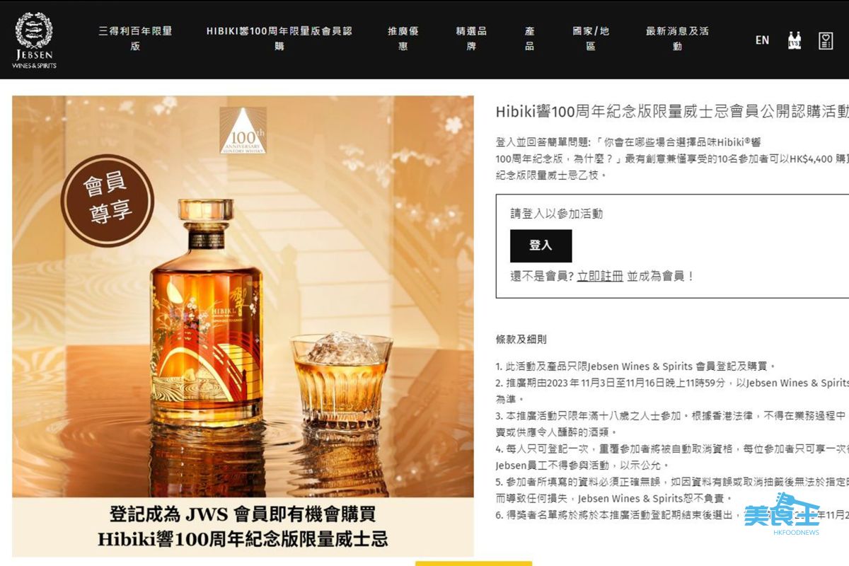 於活動期內登記成為 JWS.com 會員並簡單回答預設問題,將有機會以 $4,400 購買原裝行貨 Hibiki 響 100 周年紀念版,名額 10 支,僅限新登記會員。更可享會員專屬的網購獎賞,以及參加各種精彩的會員活動。