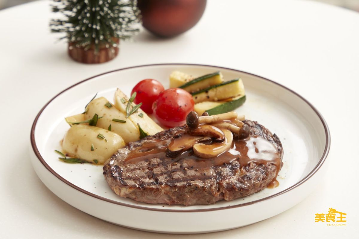 主菜方面,有 2 款選擇,一是使用肉質嫩滑紐西蘭肉眼的「烤紐西蘭特級牛肉眼配紅酒野菌汁」,以高溫煎烤鎖住肉汁,並以新鮮野菌加入紅酒製成醬汁,讓味道昇華,衝擊味蕾,令人回味。
