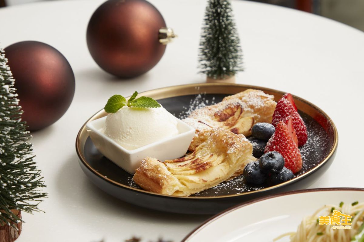 甜品則是「玉桂蘋果卷配雲呢拿雪糕」,柔軟濕潤的玉桂蘋果卷可嚐到片片清甜的蘋果肉,伴上香口的雲呢拿雪糕,還有一杯熱飲 (可以特惠價升級特色飲品),為晚餐完美作結!