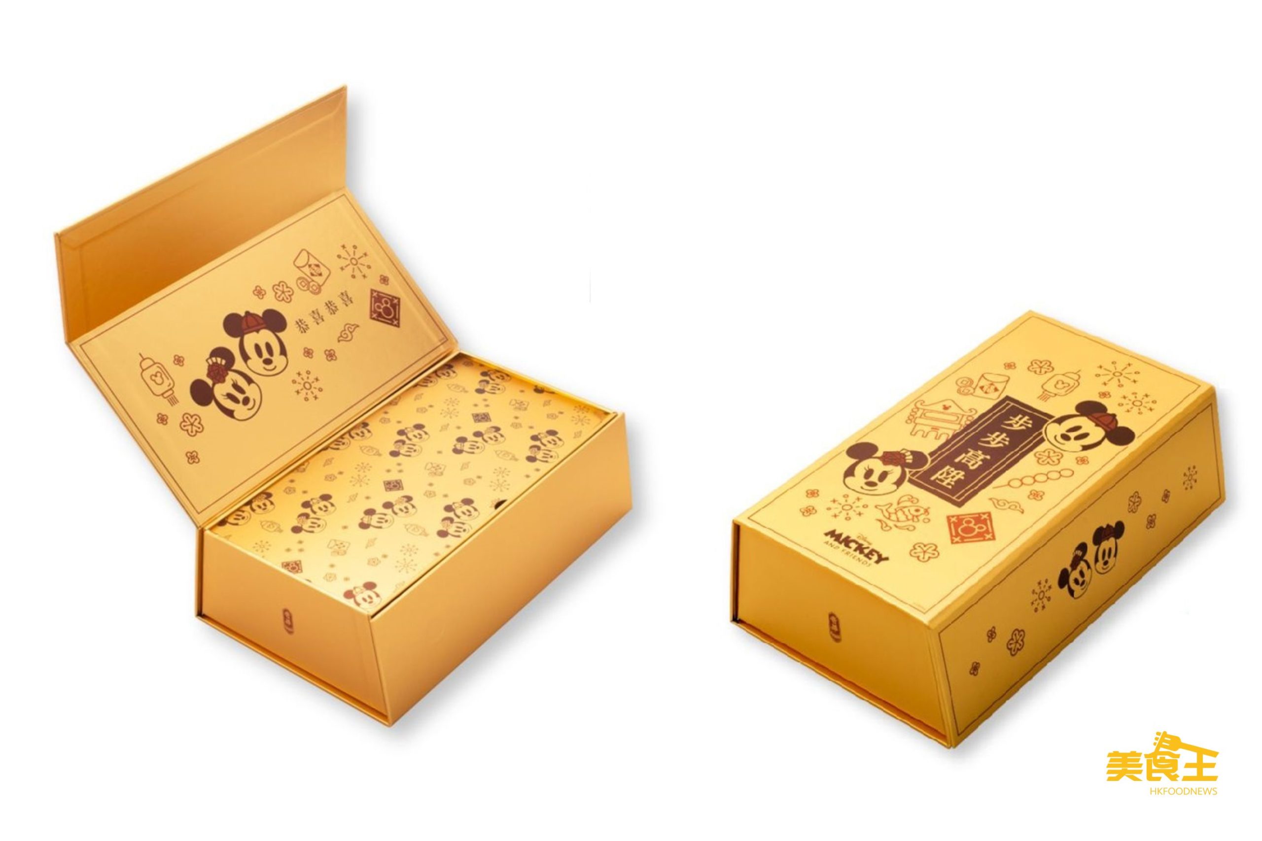 而「迪士尼米奇與好友系列賀年年糕禮盒」($148/MOP $152)內含「迷你亞嫲糖年糕」及「迷你椰汁糖年糕」各一個,金磚造型的禮盒寓意金銀滿屋,由迪士尼的甜蜜情侶 — 米奇及米妮祝賀大家新一年「步步高陞」!「迪士尼米奇與好友系列賀年年糕禮盒」更另設禮券,讓大家更輕鬆傳遞心意。