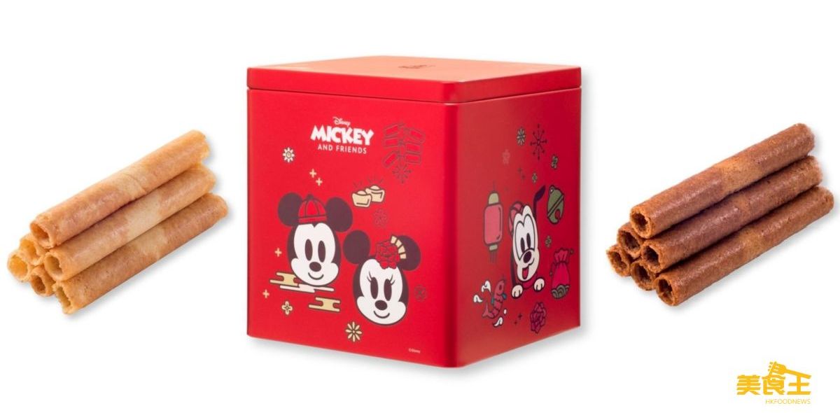 圓碌碌的蛋卷有「團圓多福」的好意頭,奇華餅家推出的「迪士尼米奇與好友系列賀年蛋卷禮盒」($88/MOP $92),以喜慶的紅色作禮盒主調,罐身每一面都有不同的米奇與好友向大家拜個早年,至於禮盒內,則有牛油蛋卷及特濃朱古力蛋卷,以酥脆可口的蛋卷配上設計精美的禮盒,送禮更可愛稱心。