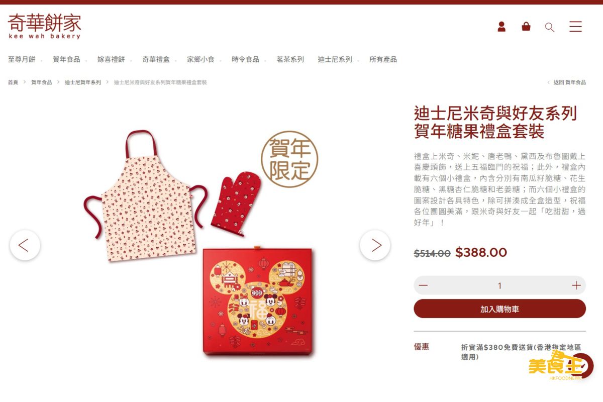 (2) 迪士尼米奇與好友賀年系列 套裝 2:$238 (原價 $324) 購買「迪士尼米奇與好友系列賀年年糕禮盒」一盒 + 「迪士尼米奇與好友系列隔熱手套」一件 + 「迪士尼米奇與好友系列圍裙」一件;