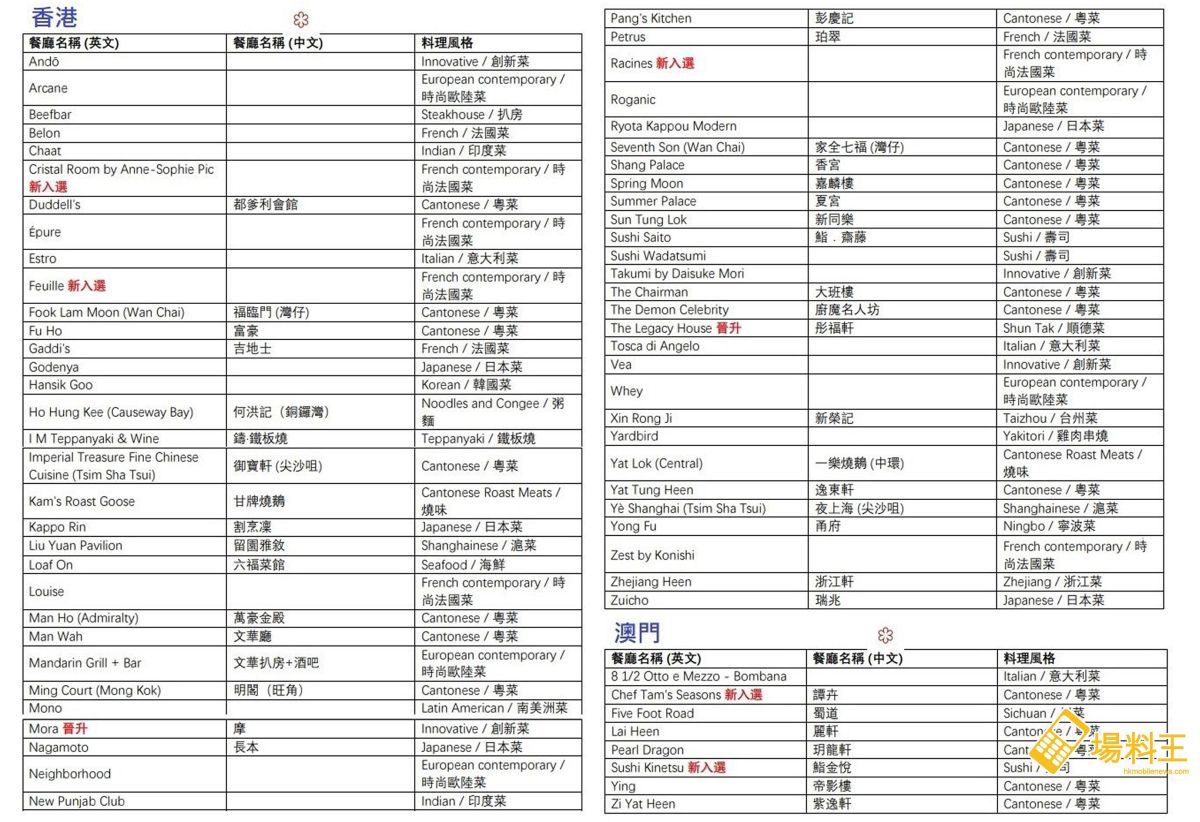 有關 68 間米芝蓮一星餐廳,當中包括 60 間香港餐廳及 8 間澳門餐廳,詳細餐廳名單可看下圖參考。