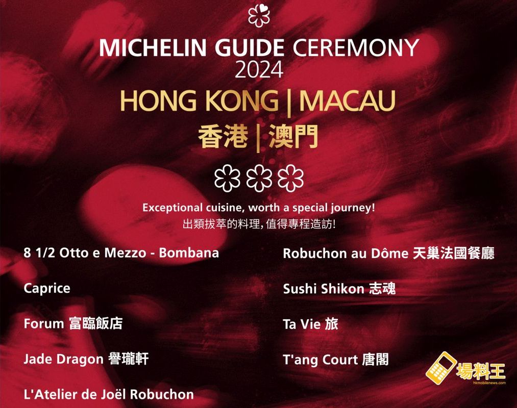 第 16 屆《香港澳門米芝蓮指南 2024》(餐廳全名單公佈)