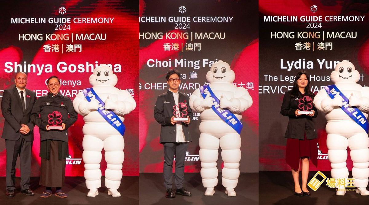 《香港澳門米芝蓮指南》致力推動餐飲行業的發展,並對多元化人才和專業知識加以表揚,而加設 3 個相關獎項。當中包括侍酒師大獎的得獎者為來自米芝蓮一星餐廳 Godenya 的五嶋慎也(下圖左);年輕主廚大獎為曾在世界各地的一些知名餐廳累積經驗於 2023 年加入香港米芝蓮一星餐廳摩的 32 歲年輕主廚蔡明輝(下圖中);服務大獎的得主則為米芝蓮一星的餐廳彤福軒的容麗雅(下圖右)。