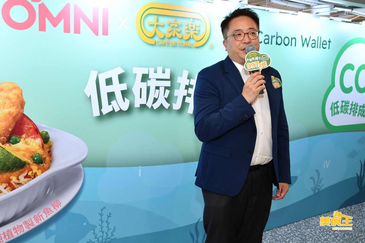 大家樂一直推動綠食風潮,素焗系列不僅有效地減低碳排放量,而且成效十分顯著。根據 Carbon Wallet 所提供的減碳量計算,一餐素食相比一餐非素食足以平均減 997g 碳排放量,這意味著每一口都為減少碳足跡作出貢獻。香港快餐總經理盧國輝先生於致辭時提到:「大家樂一直致力推動減碳及環保,招牌素焗系列產品自 2021 年推出,至今銷售額已超過 1 億港元,共節省超過 2,232 噸碳排放量,相等於為香港種植約 10 萬棵樹,同時純植物製產品有利為地球減少碳排放量,我哋深信葡汁焗素魚柳飯一定能夠為大家帶來嶄新的綠食低碳餐飲體驗,一齊享受健康飲食。」