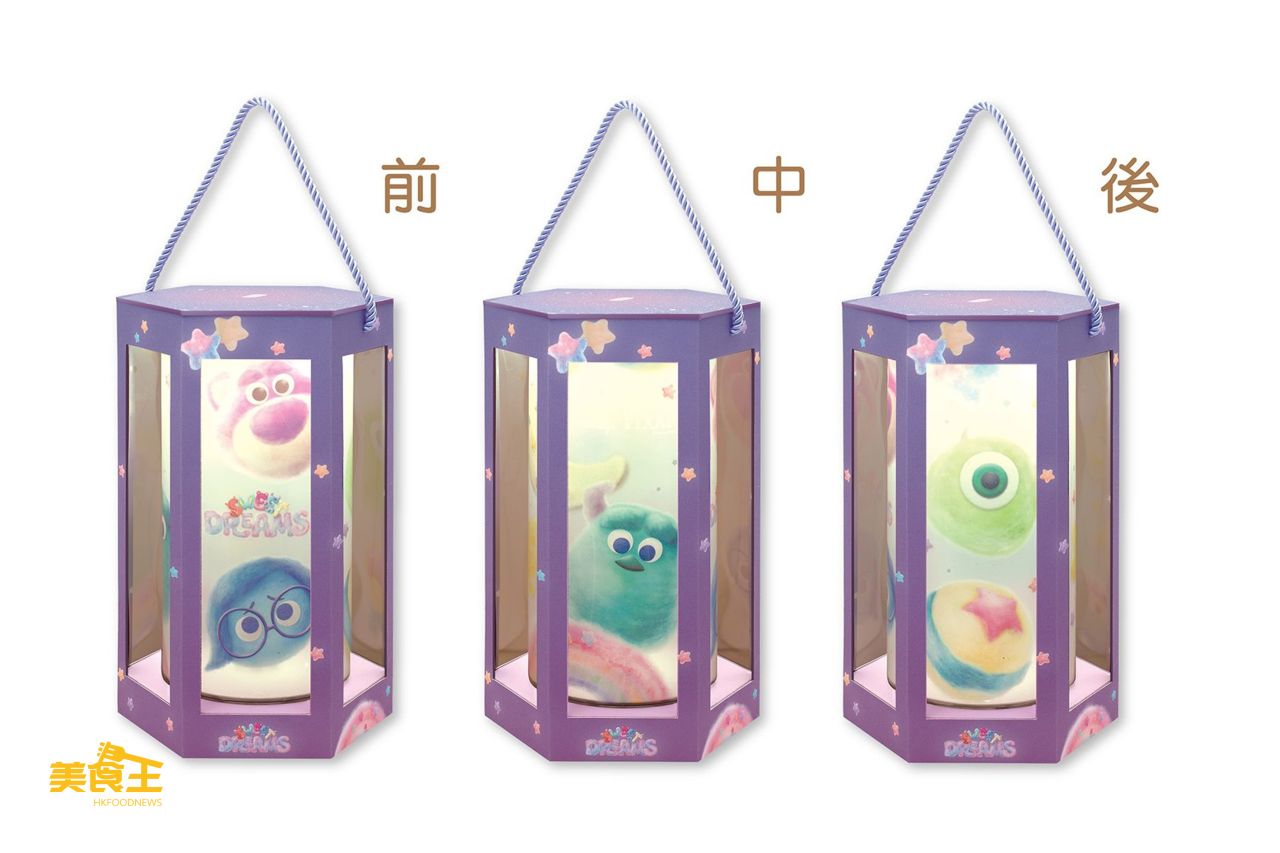 「迪士尼‧彼思系列 Sweet Dreams 走馬燈月餅禮盒」(6 個裝) 配以 4 款角色造型的創新果味奶皇月餅,分別是毛毛造型的「藍莓奶皇月餅」(紫薯口味餅皮)、大眼仔米高造型的「抹茶蛋黃奶皇月餅」(抹茶口味餅皮) 各 1 件,以及勞蘇造型的「士多啤梨奶皇月餅」(士多啤梨口味餅皮)、阿愁造型的「芒果奶皇月餅」(芝麻口味餅皮) 各 2 件,品嚐月餅後,把禮盒亮燈變成奪目耀眼的走馬燈燈籠,為中秋月圓之夜添上耀眼光彩!今個團圓夜,約定 4 位迪士尼‧彼思朋友與大家重溫童夢,一起賞月!
