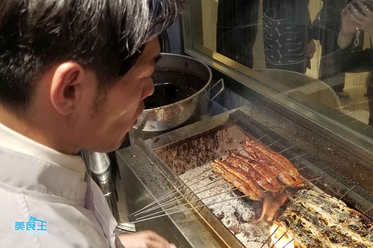 職人使用自家研發的備長炭在高溫、且短時間內將鰻魚烤製。