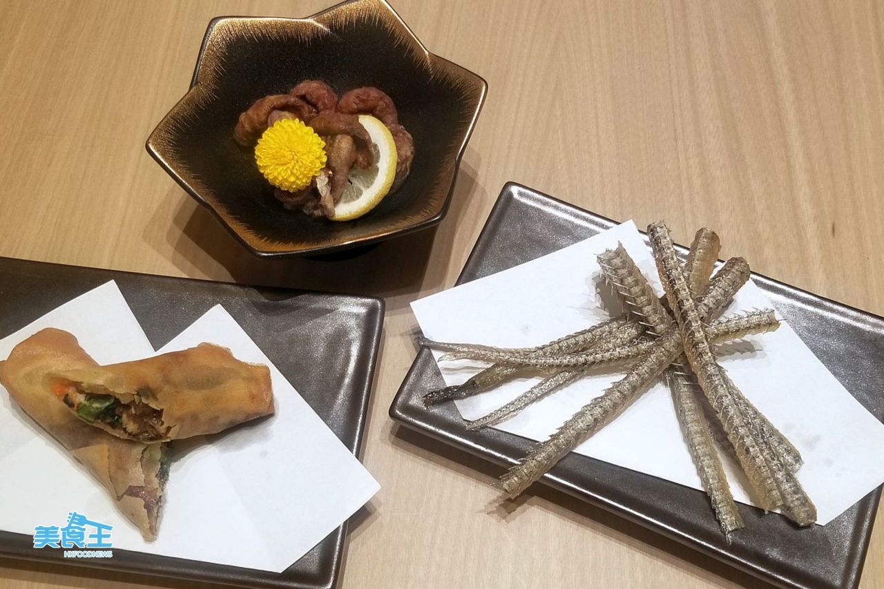 為了讓顧客能全方位享受鰻魚的美味,店家還推出了「炸鰻肝」($104/下圖中)、「鰻魚春卷」($58/下圖左)與「鰻骨仙貝」($55/下圖右)等特色小菜,另在日本極受歡迎的「甜醋鰻拌青瓜」($98)和「鰻魚玉子燒」($118)等香港店亦有提供。