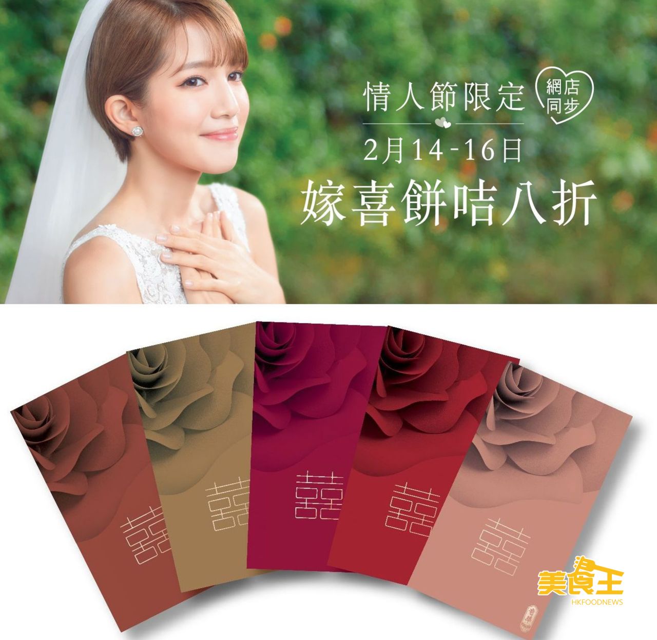 奇華嫁喜餅咭備有 5 款,各具不同特色,每張原價由 $50 至 $390,可於全線奇華餅家照價換取 30 多款傳統嫁喜禮餅及逾 300 款中西餅食,以滿足新人及親友提供多重選擇及不同的需要。現於 2 月 14 至 16 日期間,於奇華全線分店及網店購買任何嫁喜餅咭均可享八 8 折優惠。