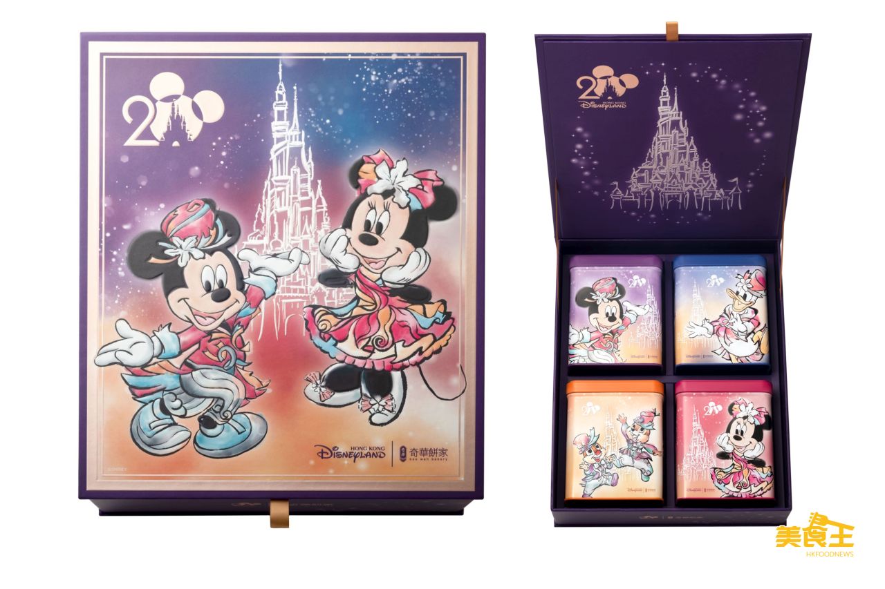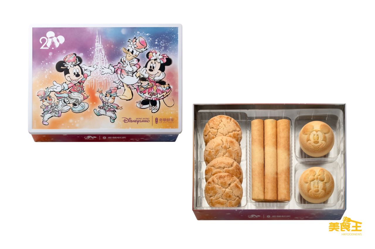 已經超過 87 年歷史的香港餅食品牌奇華餅家,與香港迪士尼首次合作推出限定經典港式餅食禮盒,5 款禮盒剛於 6 月底率先於香港迪士尼樂園登場。當中 3 款的禮盒設計是以米奇與好友歡聚慶賀香港迪士尼 20 周年為主題,當中收藏價值最高的算是「20 周年奇妙派對米奇與好友奇華什錦蝴蝶酥禮盒」,因內有米奇與好友的 4 款禮盒,各禮盒內有 5 件蝴蝶酥或 5 件芝麻蝴蝶酥,售價為 $279。
