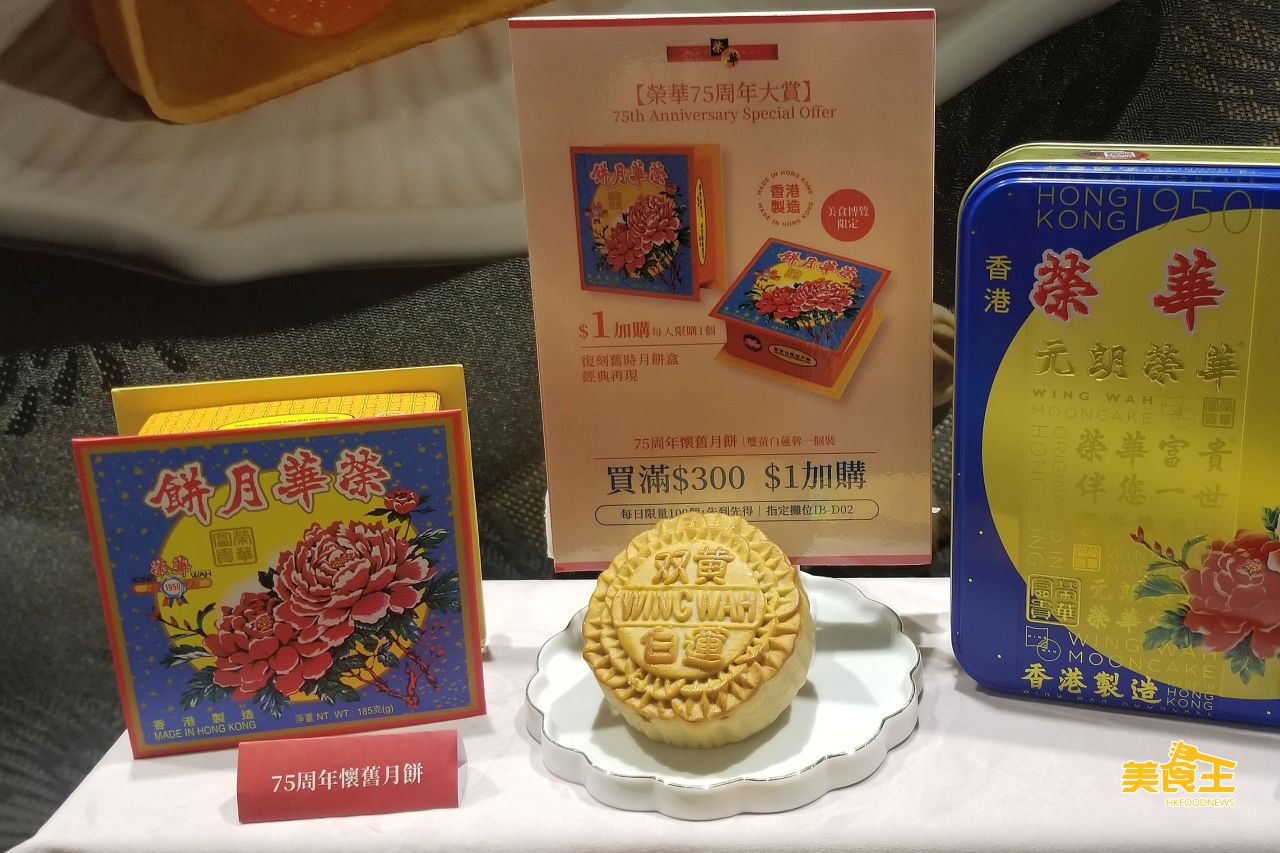 活動期內,為慶祝榮華食品 75 周年,凡購物每滿 $300 可以 $1 加購內有一個雙黃白蓮蓉月餅的「75 周年懷舊月餅」,每日限量 100 盒。(榮華食品 / 攤位:1B-D02)