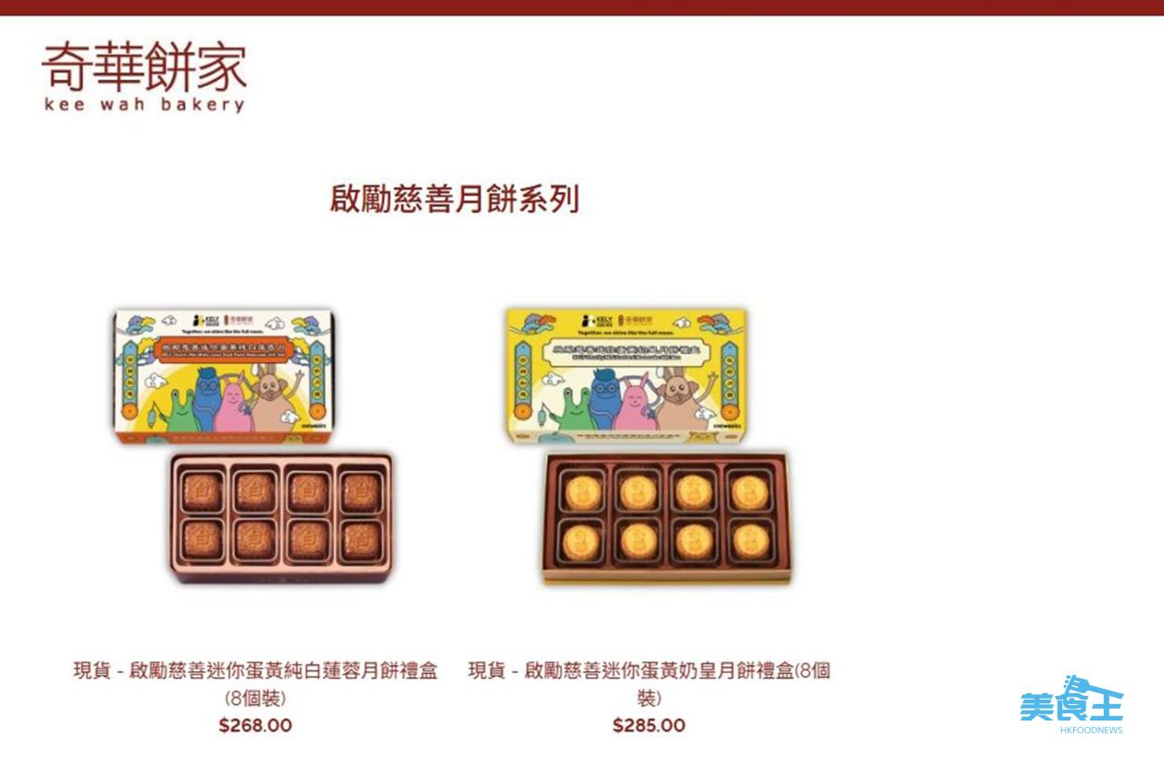「啟勵慈善迷你蛋黃純白蓮蓉月餅禮盒」(8個裝) 及「啟勵慈善迷你蛋黃奶皇月餅禮盒」(8個裝),售價分別為 $268 及 $285,於即日起至 10 月 3 日期間發售。每售出一盒慈善月餅,奇華將扣除成本後全數撥捐予「啟勵扶青會」,讓每一份支持化為扶助年青人的實際關懷,希望今個中秋,大家也會和身邊的年青人一起,分享一件月餅,分享一份陪伴。