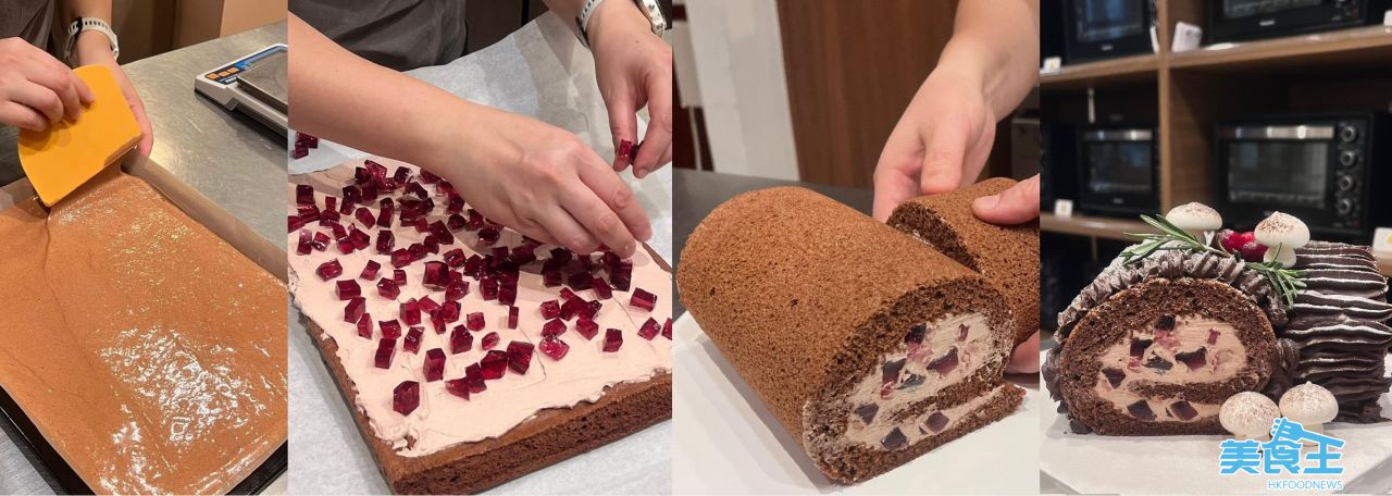 「朱古力樹頭蛋糕」和「聖誕薑餅花環」課堂提供獨特的烘焙體驗,成品不僅適合用作節日派對上的美食,亦可作為家中精美的裝飾。經典聖誕「朱古力樹頭蛋糕」(下圖) 難度較高,學員將在導師的指導下,親手製作鬆軟的朱古力海綿蛋糕,並加入香滑忌廉及黑加侖子啫喱糖豐富層次,並以朱古力忌廉學習塑造樹紋的技巧,180 分鐘的課程時間,學費 $650。「聖誕薑餅花環」課堂則特別設有成人班及親子班,導師將示範如何製作香脆可口的薑餅,並教授以糖霜裝飾的技巧;不論是大人或是小朋友都可以發揮無限創意,親手製作出「可以吃的聖誕裝飾」;180 分鐘的課程時間,學費 $530/成人班、$580/親子班。