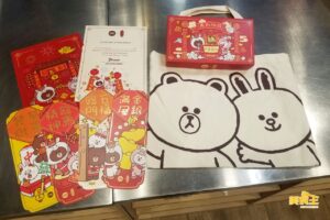 完成後不僅可帶走自製萌爆的 LINE FRIENDS 特別版賀年糕點,更可獲得賀年期間限定「LINE FRIENDS WITH KEE WAH BAKERY 雙色椰汁糖年糕及臘味蘿蔔糕班」證書 1 張,並帶走分別盛載著BROWN 及 CONY 雙色椰汁糖年糕的立體 3D 糕模套裝 2 套,及印有 BROWN 與 CONY 馬年造型的臘味蘿蔔糕模具套裝 1 套。同時亦可獲贈多款賀年特別版紀念品,包括 LINE FRIENDS賀年A4 文件夾 1 個、LINE FRIENDS 賀年揮春 1 套 4 款、LINE FRIENDS 環保袋 1 個,以及 LINE FRIENDS 賀年包裝盒 3 個,讓 BROWN 與 CONY 陪大家歡度甜蜜新年。