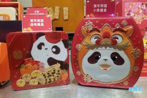 應節可愛的賀年限定熊貓禮盒系列同樣不可錯過,「賀年熊貓小食禮盒」($112 /MOP $118,下圖右) 內含花生脆糖、杏仁小紅莓鳥結糖、牛油曲奇各 6 件的精緻小食及造型可愛的朱古力味、草莓味熊貓曲奇各 3 件;而「賀年熊貓曲奇禮盒」($112 /MOP $118,下圖左) 則滿載 18 件濃郁朱古力曲奇,為新春添上一份童趣歡樂。