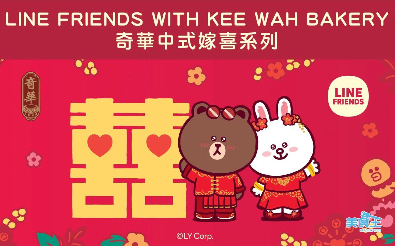 奇華餅家為傳統婚嫁禮餅注入活潑而溫暖的甜蜜元素,與 Line Friends 聯手推出全新的「Line Friends 與奇華嫁喜系列」。全球公認的模範情侶 Line Friends Brown 與 Cony 那份沈穩且從一而終的甜蜜愛情,完美詮釋了幸福婚姻中執子之手與子皆老的純真盟約。這對模範情侶將化身為幸福大使,將祝福透過精緻的禮盒、回禮小禮物及嫁喜禮券替新人表達對親友的謝意,為新人向親友分享甜蜜喜悅,一同見證每一段獨一無二的幸福愛情故事。