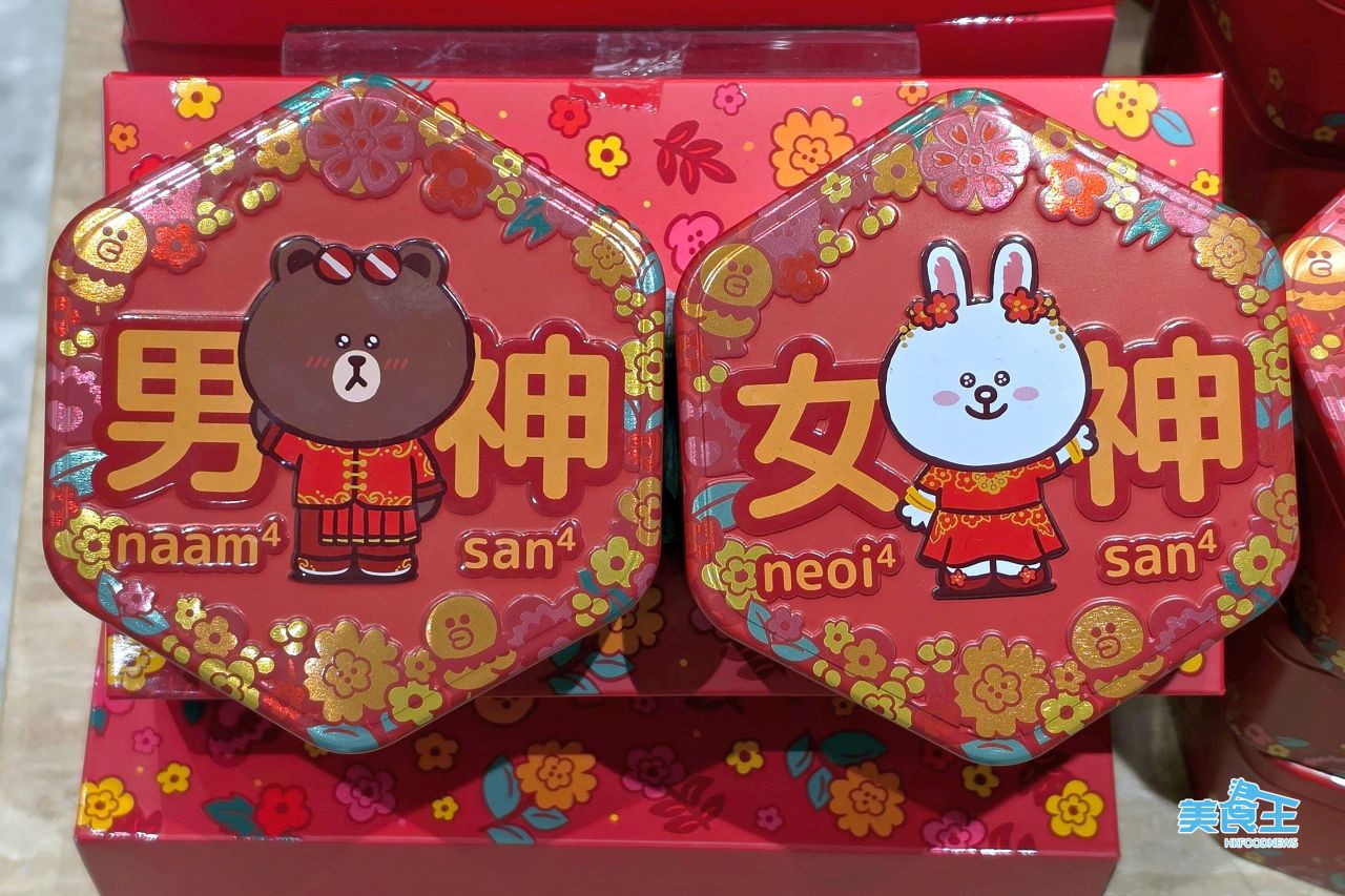 奇華特別將「Line Friends with Kee Wah Bakery 奇華中式嫁喜系列」注入滿滿的現代感與香港專屬的本土情懷。六角形的「Line Friends with Kee Wah Bakery 精緻禮盒」以喜慶大紅為主調,2 款禮盒 ($40 /MOP $42) 分別印有穿上充滿時尚感的大紅長袍馬褂的「男神」—— Brown,與穿著傳統與時尚並重的現代風格鳳冠霞帔、展露著幸福笑容的「女神」—— Cony,隔空放閃。Brown 款禮盒內藏果仁香氣濃郁的「杏仁朱古力曲奇」(5件);而 Cony 款禮盒則盛載酸甜適宜可口的「小紅莓牛油曲奇」(5件)。這天生一對的「男神 Brown」與「女神 Cony」嫁喜禮盒,必定是新人與至親好友分享甜蜜幸福最搶眼的亮點。