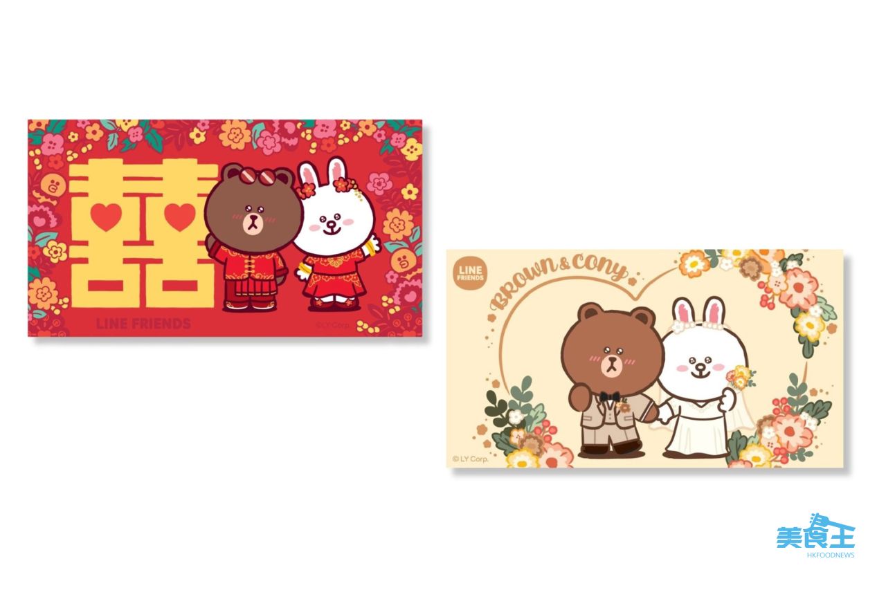 「Line Friends with Kee Wah Bakery 奇華嫁喜系列」時同亦推出了中式及西式的「$50 嫁喜禮劵」($50)。每款嫁喜禮券,更可靈活使用,於全線奇華餅家照價換取奇華餅家各款產品,為新人及親友提供多重選擇。這種貼心的設計,賦予了親友們自行挑選心儀餅食的自由,同時免去了新人運送禮盒的辛勞,更讓這份喜訊的傳遞變得更從容、更能滿足每個人不同的喜愛。