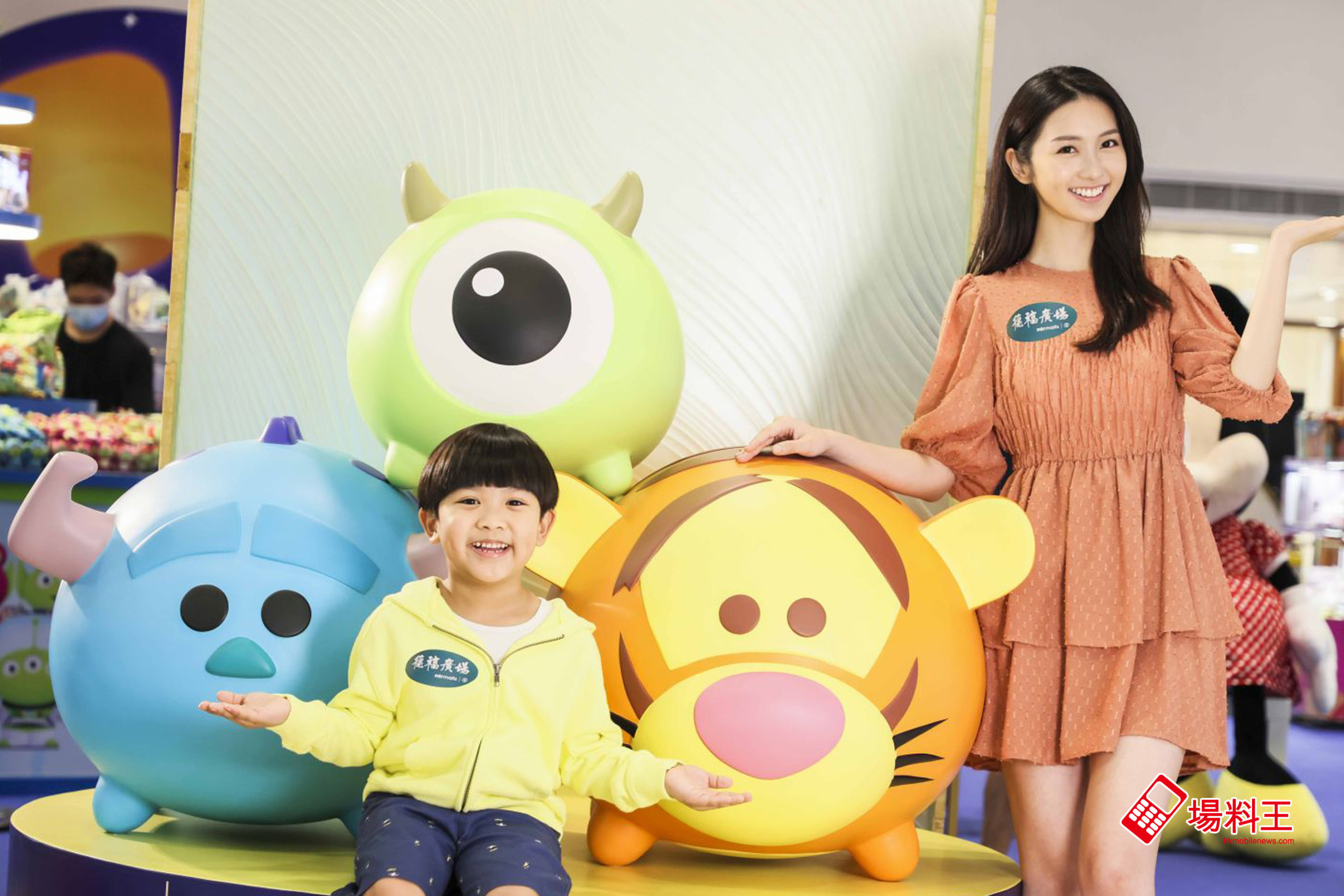 於快閃限定店內,設有兩個趣緻打卡位,一個是由 Disney Tsum Tsum 的跳跳虎、毛毛及大眼仔造型的打卡位 (本文主圖),而另一個就是米奇、米妮共坐長椅上跟大家拍照的位置。