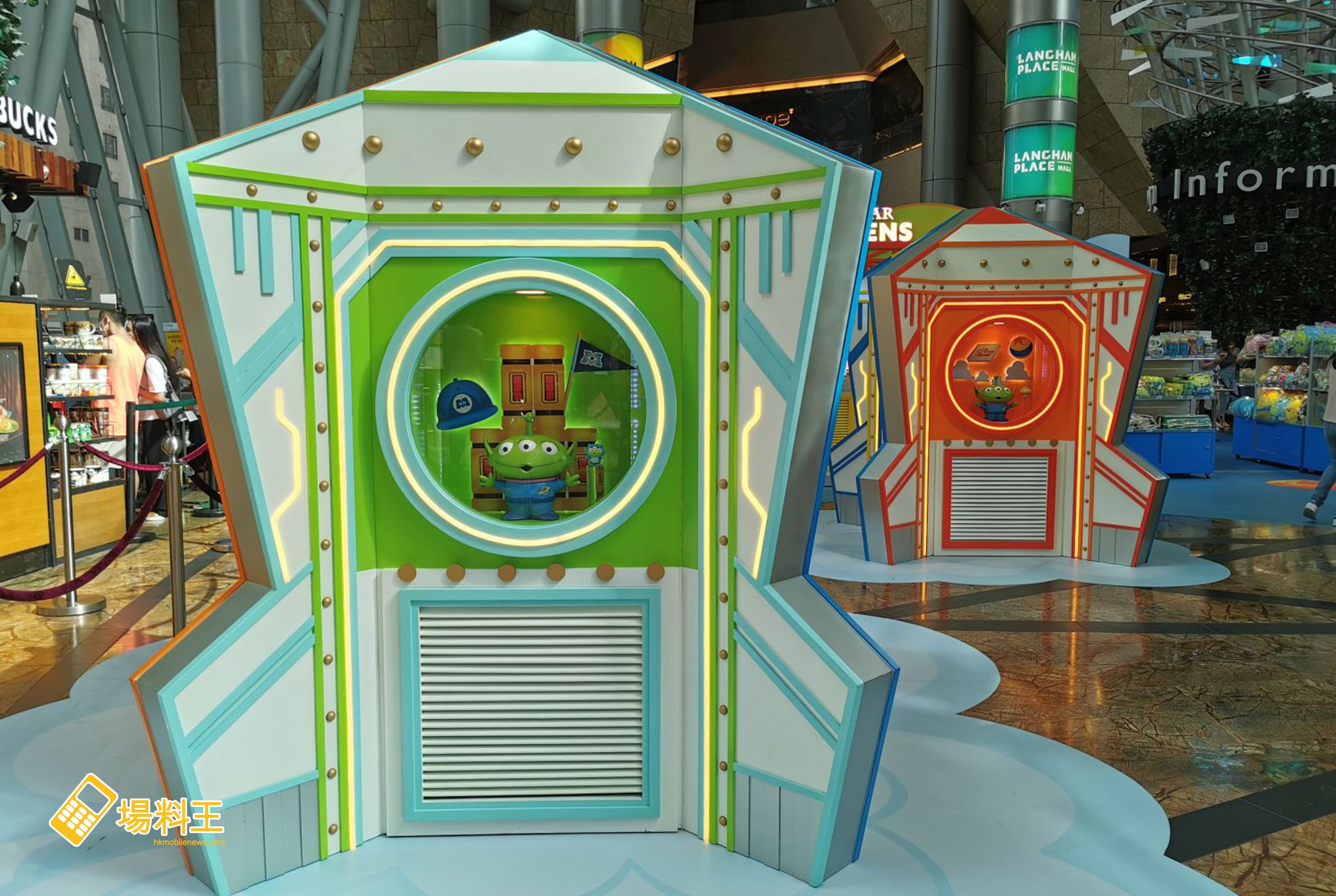 於兩座火箭裝置內的三眼仔,其驚喜造型包括《反斗奇兵》的胡迪、翠絲、勞蘇、賓尼、阿得及小叉,以及《怪獸公司》的毛毛及阿 Boo。