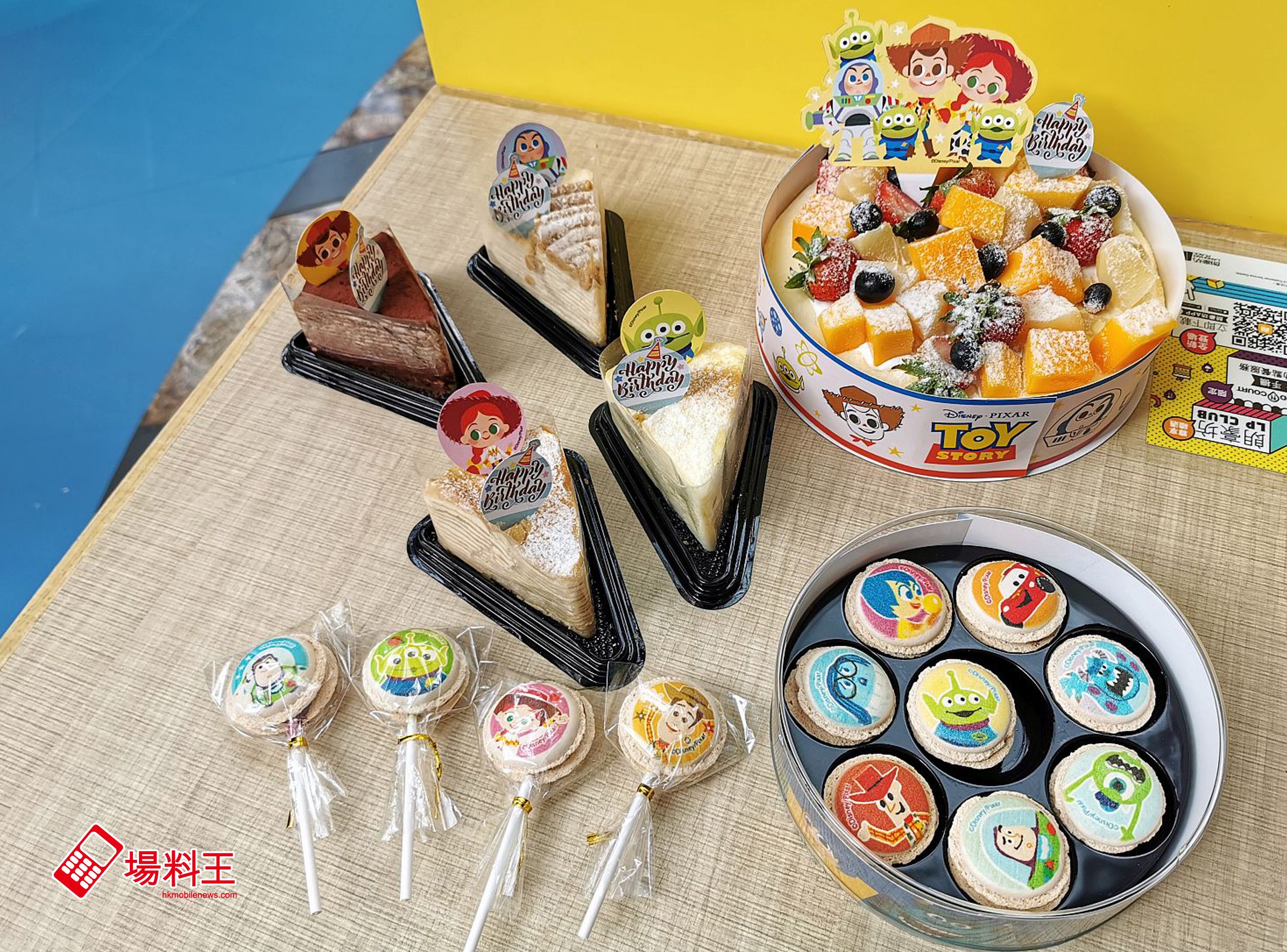 三眼仔 Alien Remix 派對還跟山下菓子合作,推出期間限定甜品,當中包括棒棒馬卡龍 (左下 / $25)、馬卡龍禮盒裝 (右 / $180)、Toy Story 手製千層蛋糕 (原味、粟米、朱古力及伯爵茶味道 / $40)、原味 Toy Story 8 吋手製千層蛋糕 (右上 / $350) 及布甸連陶瓷杯 ($100)。