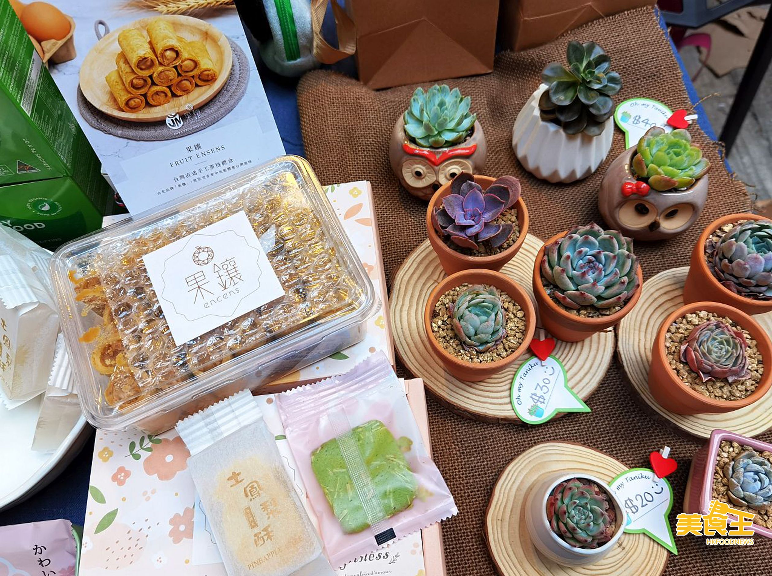 「失驚無神放閃攤」於本年 1 月才首辦,筆者於 1 月 29 日曾到訪參觀,當天的參展的單位亦有售特色食品,如由台灣直送、共 3 款味道的「果鑲」手工蛋卷(本文主相左);由煮製菠蘿餡料到香脆薄皮的 DIY「手工土鳳梨酥」(本文主相下)。