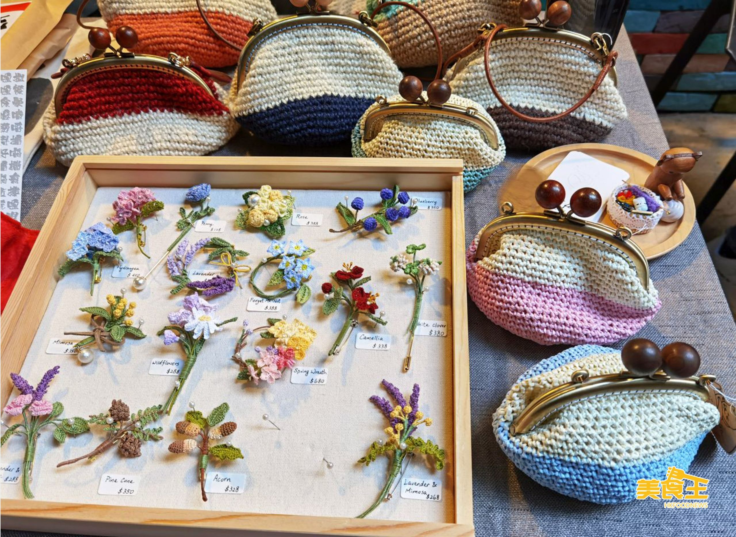 至於其他文青創意手作也很精緻,當中包括以多肉植物為主的小擺設盤栽 (本文主相右);cforcrafthk 以鉤織工藝製成的心口針、小手袋等飾品 (上圖)。