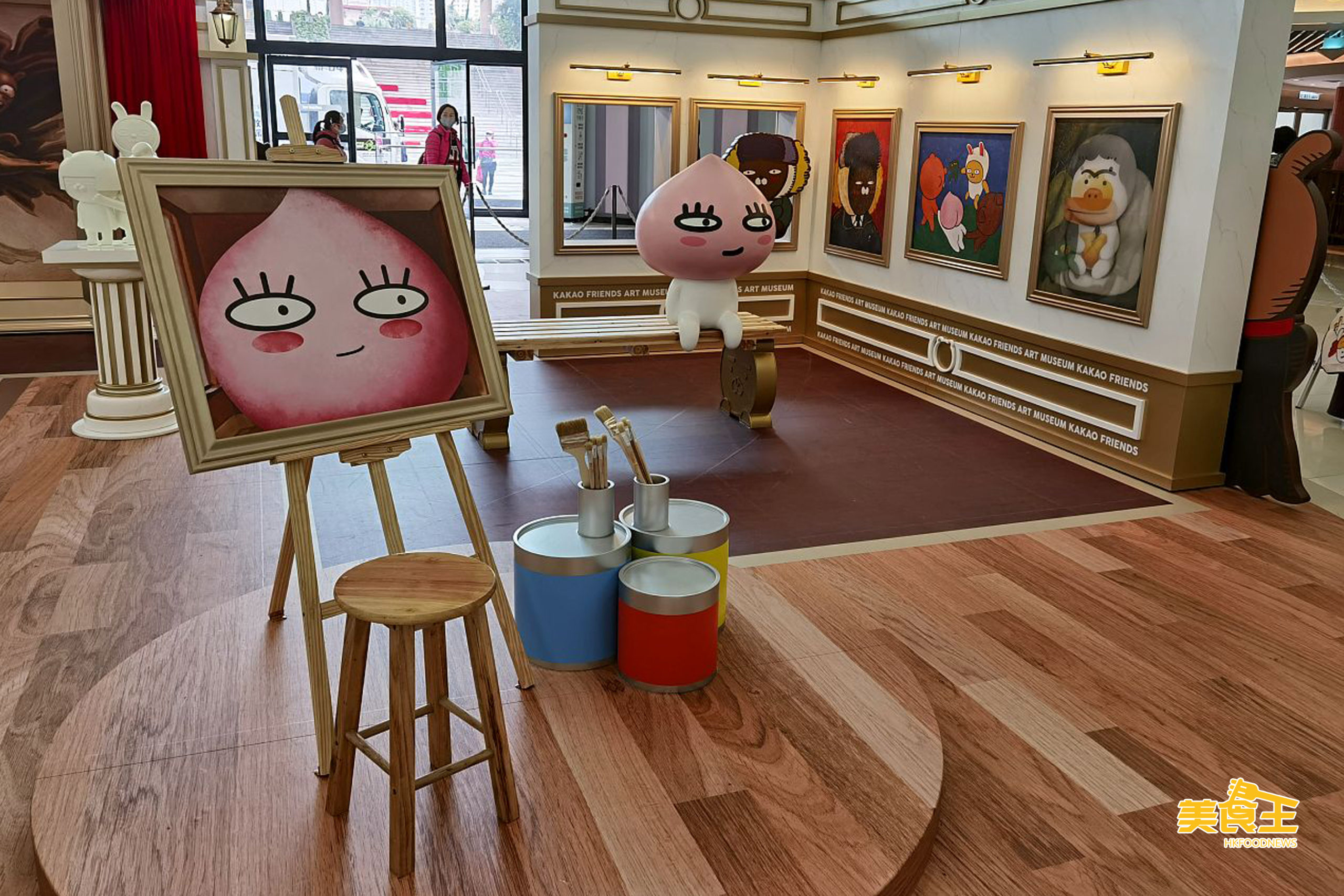 在藝術館中央見到 Ryan 迎接大家外,旁邊更有頭戴畫家帽的 Muzi 以及 2.5 米高的粉紅色 Apeach 電鍍塑像,十分搶眼!