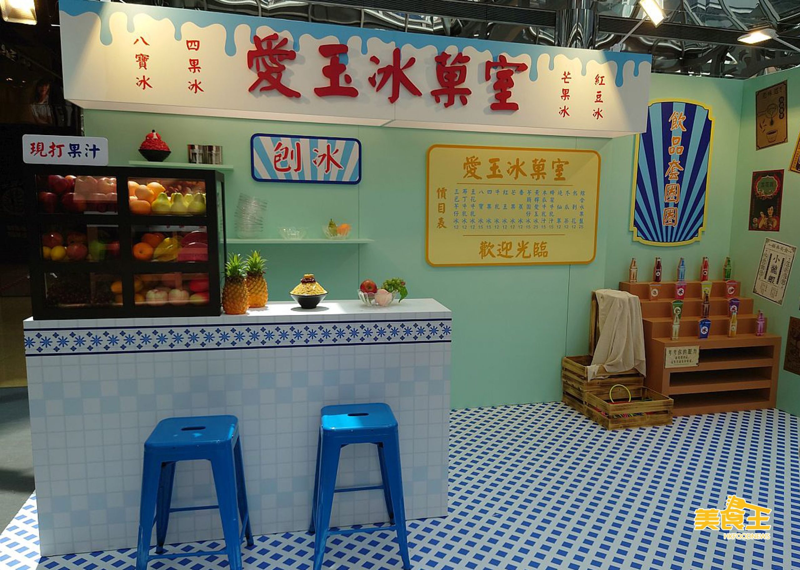 很多人都喜歡逛台灣的夜市嚐美食,而場內亦有舊式冰室場景,搭建了一個「愛玉冰菓室」。