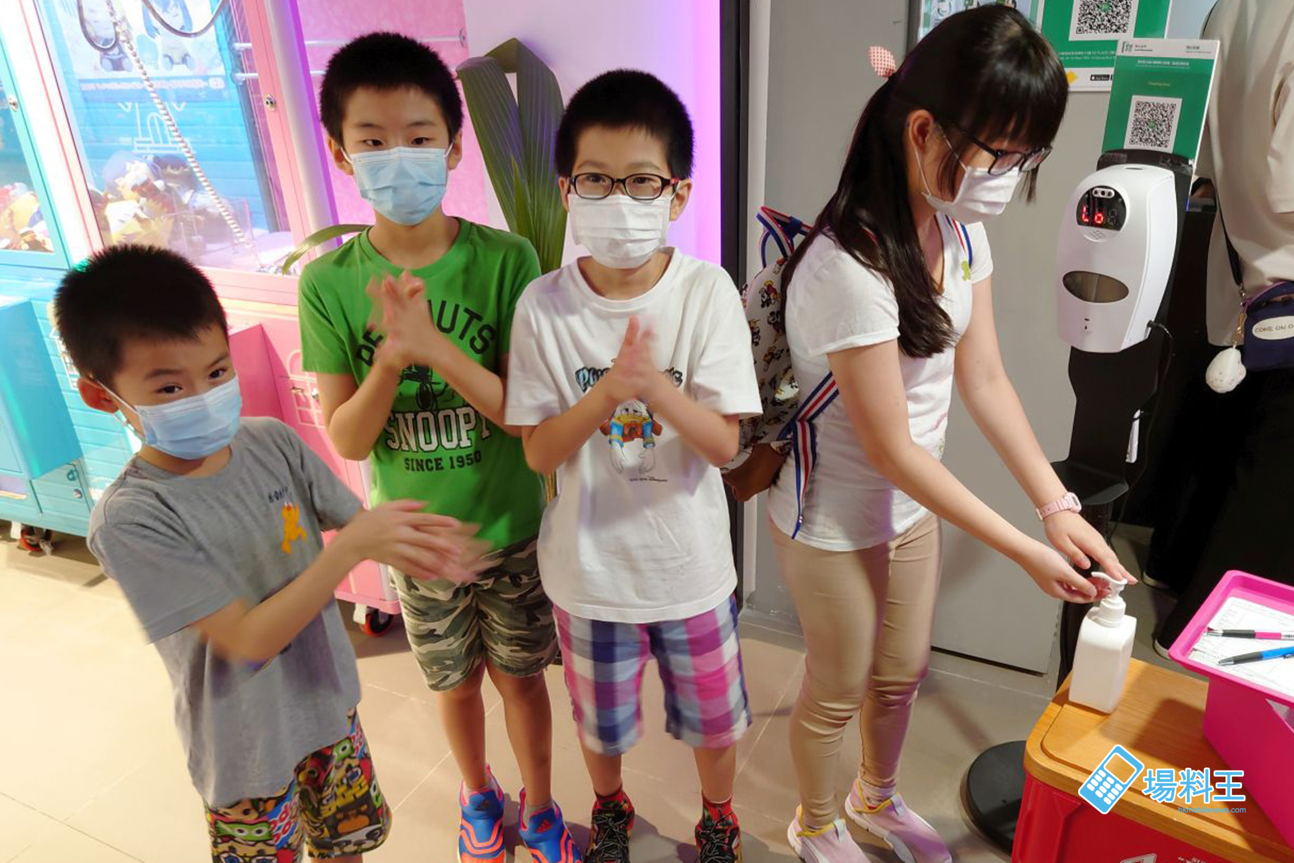 甫進遊樂場,大家必須進行探測體溫,以手機掃瞄「安心出行」或登記入場資料,並以搓手液為雙手進行消毒,來保護自身及他人的安全。