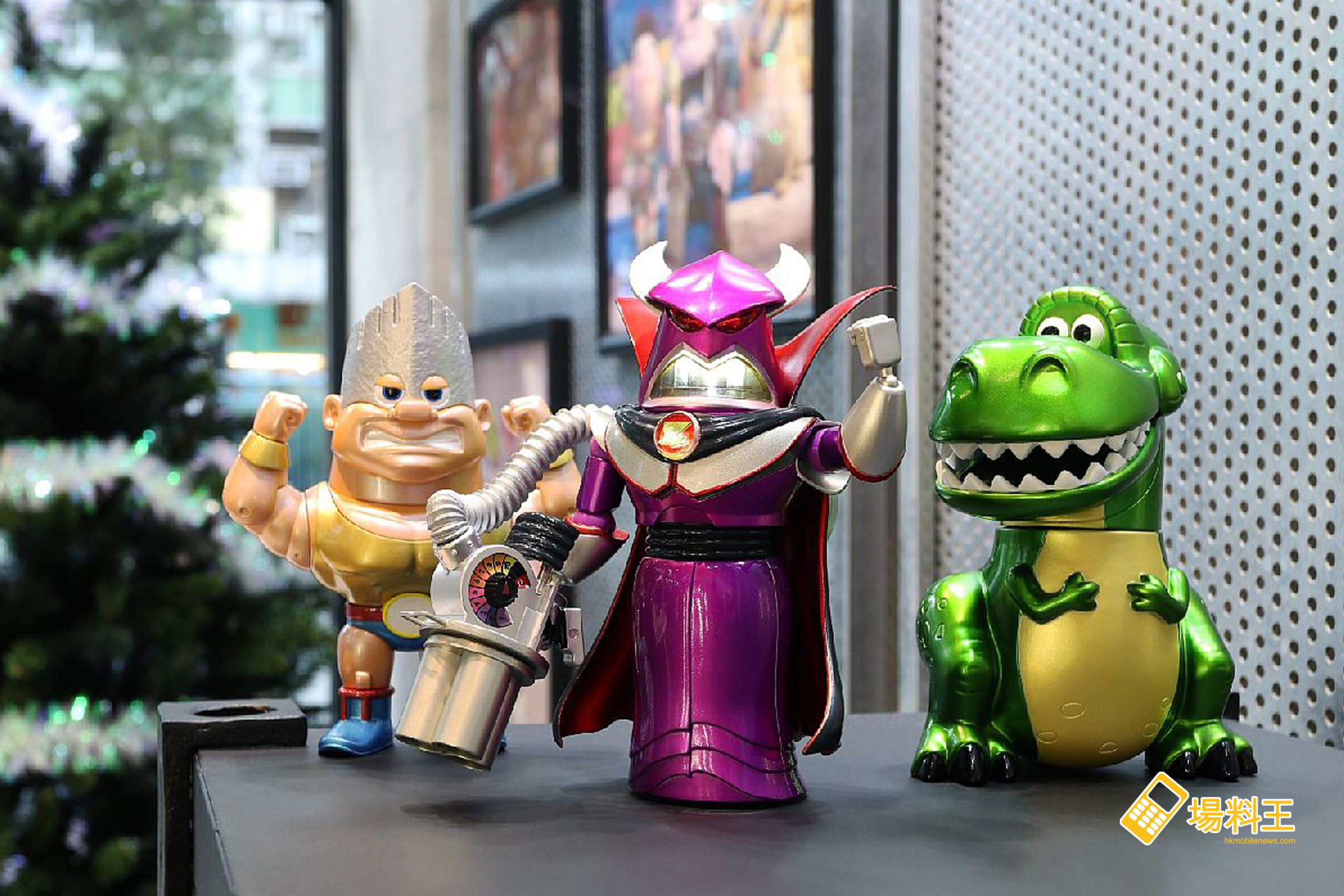 此外,展覽亦限量發售 90cm 金屬色巴斯光年 ($9,980/下圖中) 及 55cm 金屬色三眼仔 ($2,380下圖左、右),各限量 2 隻,忠實粉絲萬勿錯過!