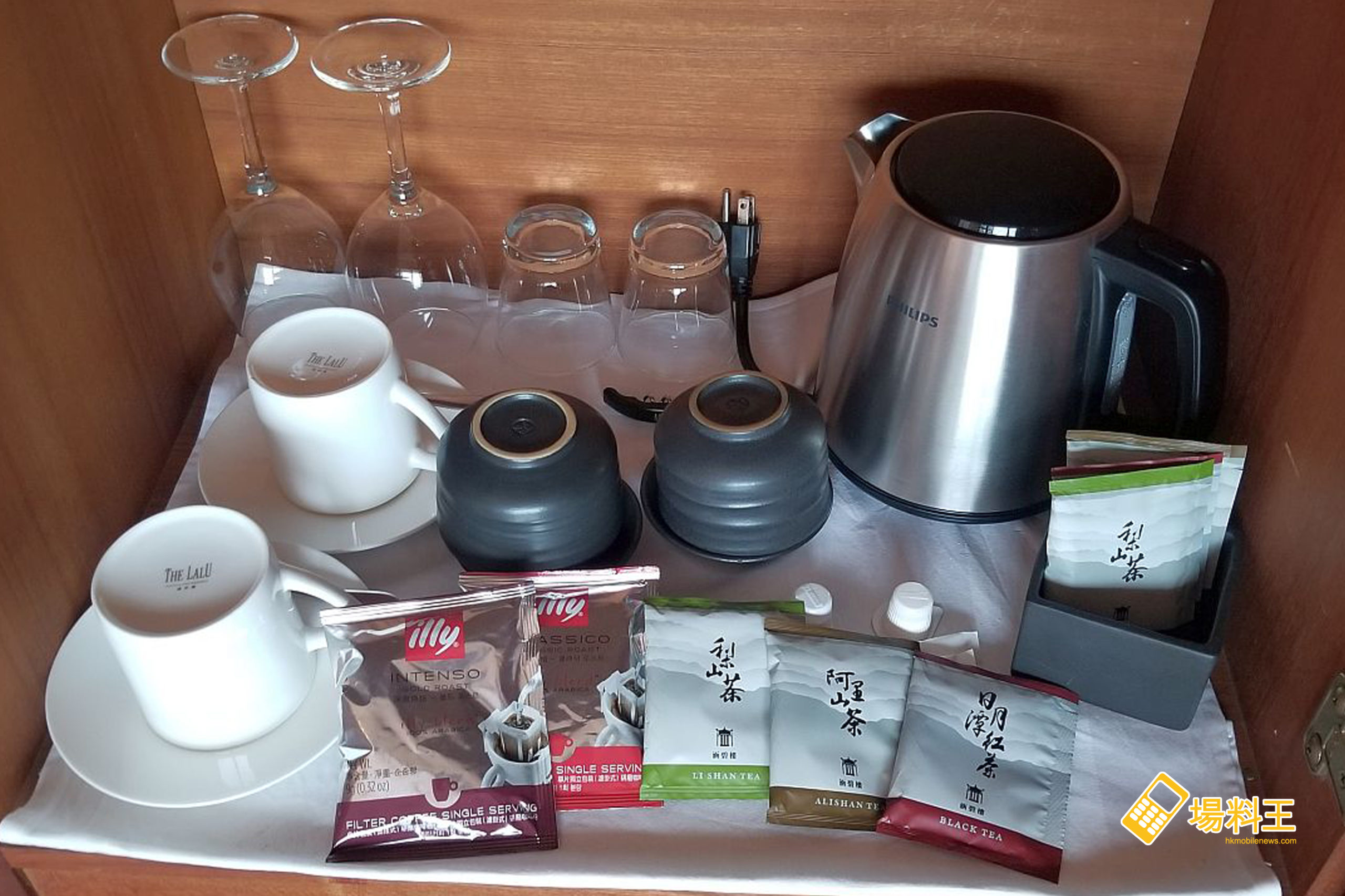 房間除了提供飲用水外,即沖飲品也較高級,包括提供意大利品牌 illy 的即沖咖啡,而喜歡喝茶的亦有酒店特選的梨山茶及南投有著名的阿里山茶、日月潭紅茶。