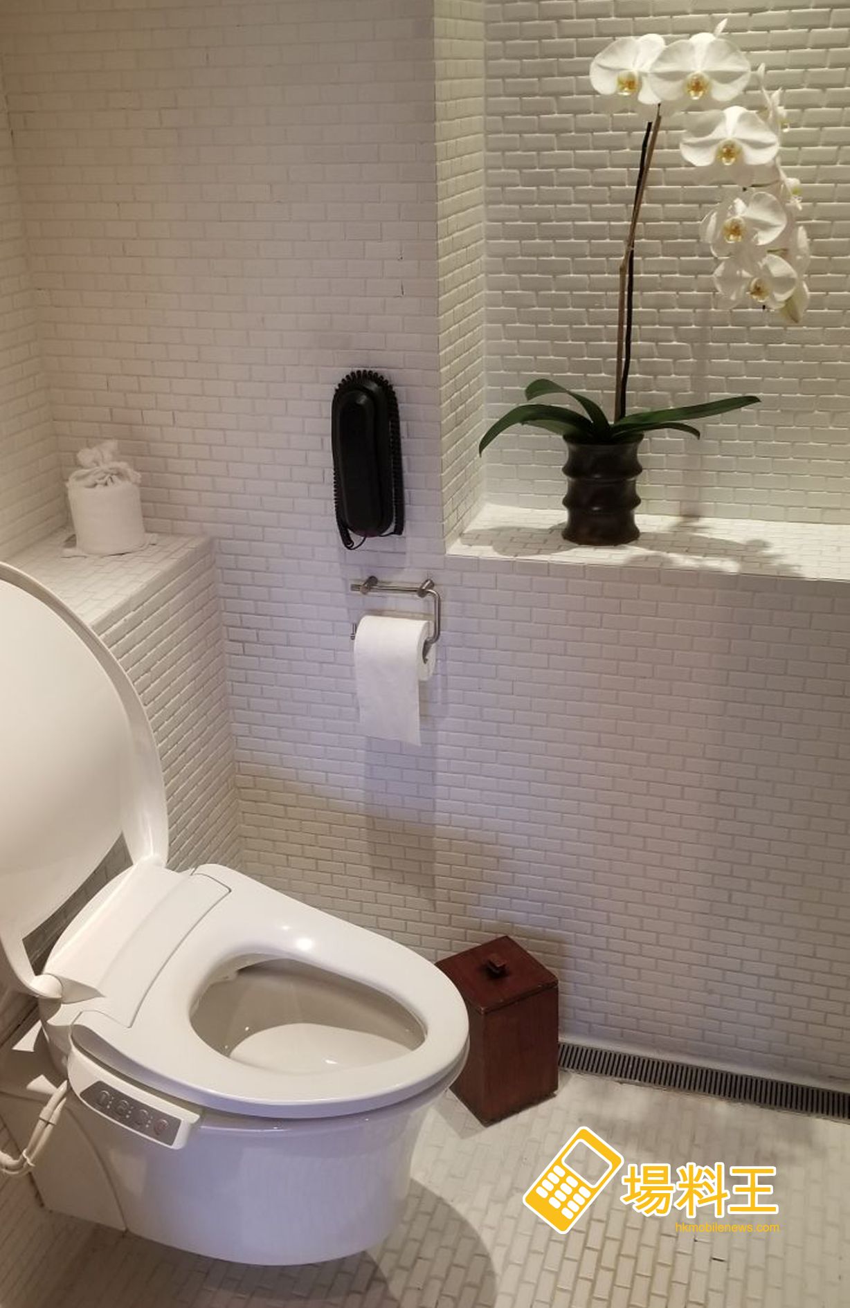 廁所採用自動馬桶,還放有一盤蘭花,貫徹酒店的優雅格調。