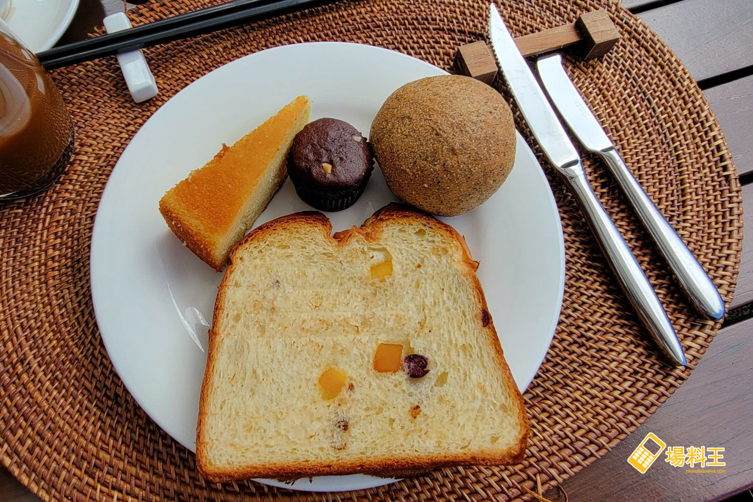 令人驚喜的,是餐廳提供的麵包款式頗多,除一舨的牛奶吐司外,更有紅茶歐包、紅酒玫瑰麵包、紅茶芒果乳酪麵包及一些小蛋糕,選擇多元化。