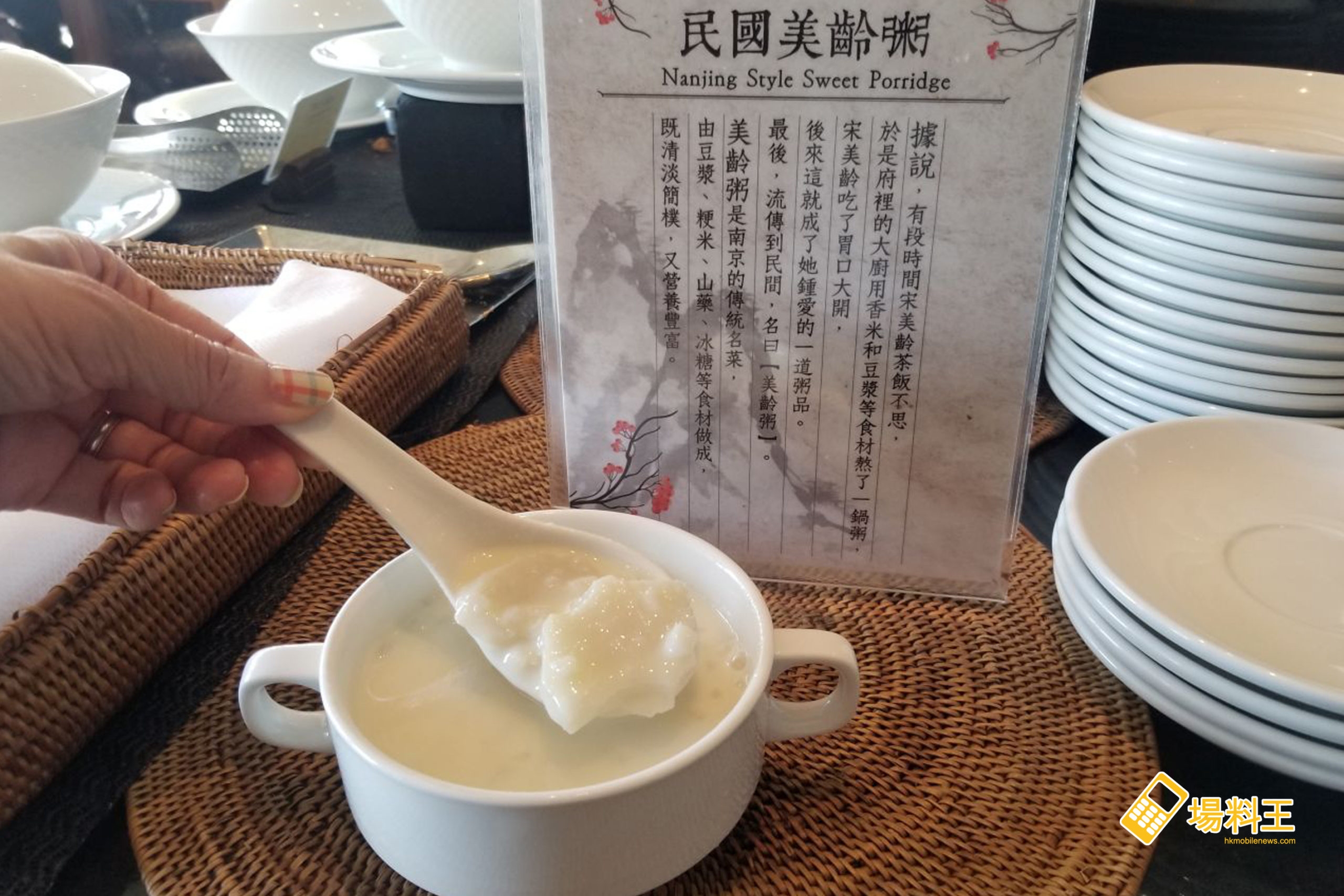 涵碧樓曾為國民政府先總統蔣公的行館,當中有一道關於先總統蔣公夫人宋美齡的「美齡粥」,應是一般餐廳也少有提供的。其實「美齡粥」是南京的傳統粥品,由豆漿、米、山藥、冰糖等食材做成,味道清甜又富營養,據說宋美齡曾有段時間茶飯不思,故府裡的大廚就煮了這道粥品令她胃口大開,並她喜歡的這甜粥就多了「美齡粥」這名字。