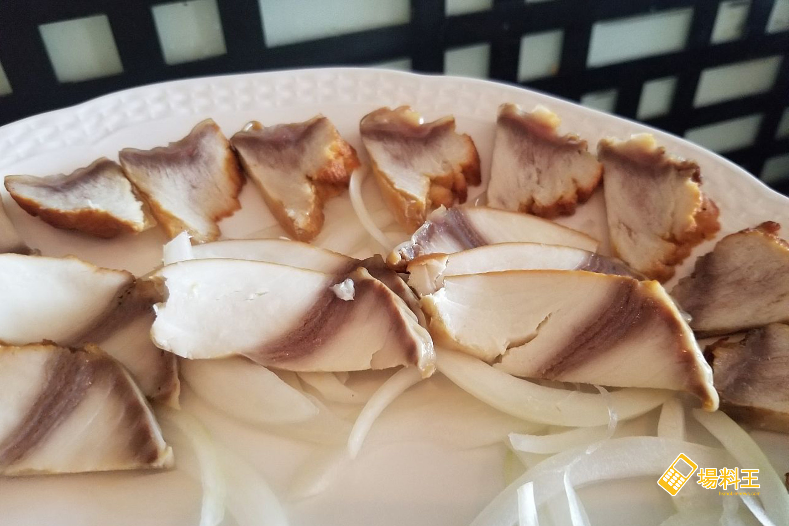 「鯊魚煙」是最常見的台式小食之一,多是以生鯊魚腹肉作為原料,經食鹽水、調味醬料浸泡後風乾,再蒸熟後二次風乾,然後作燻製,口感順滑且有獨特煙燻味。
