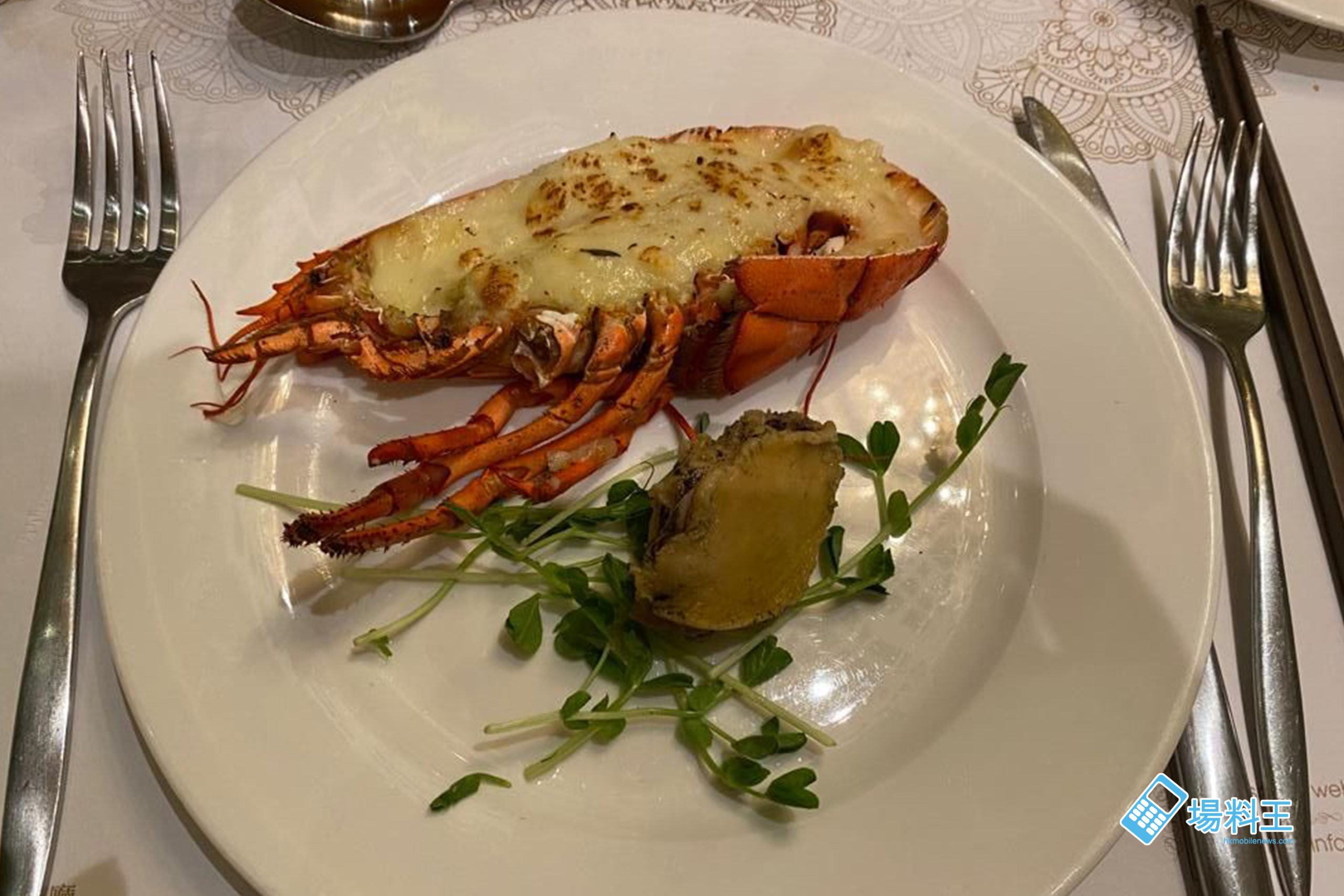 由於是假日關係,餐廳還會為每位食客送上焗龍蝦半隻及醉鮑魚一份。
