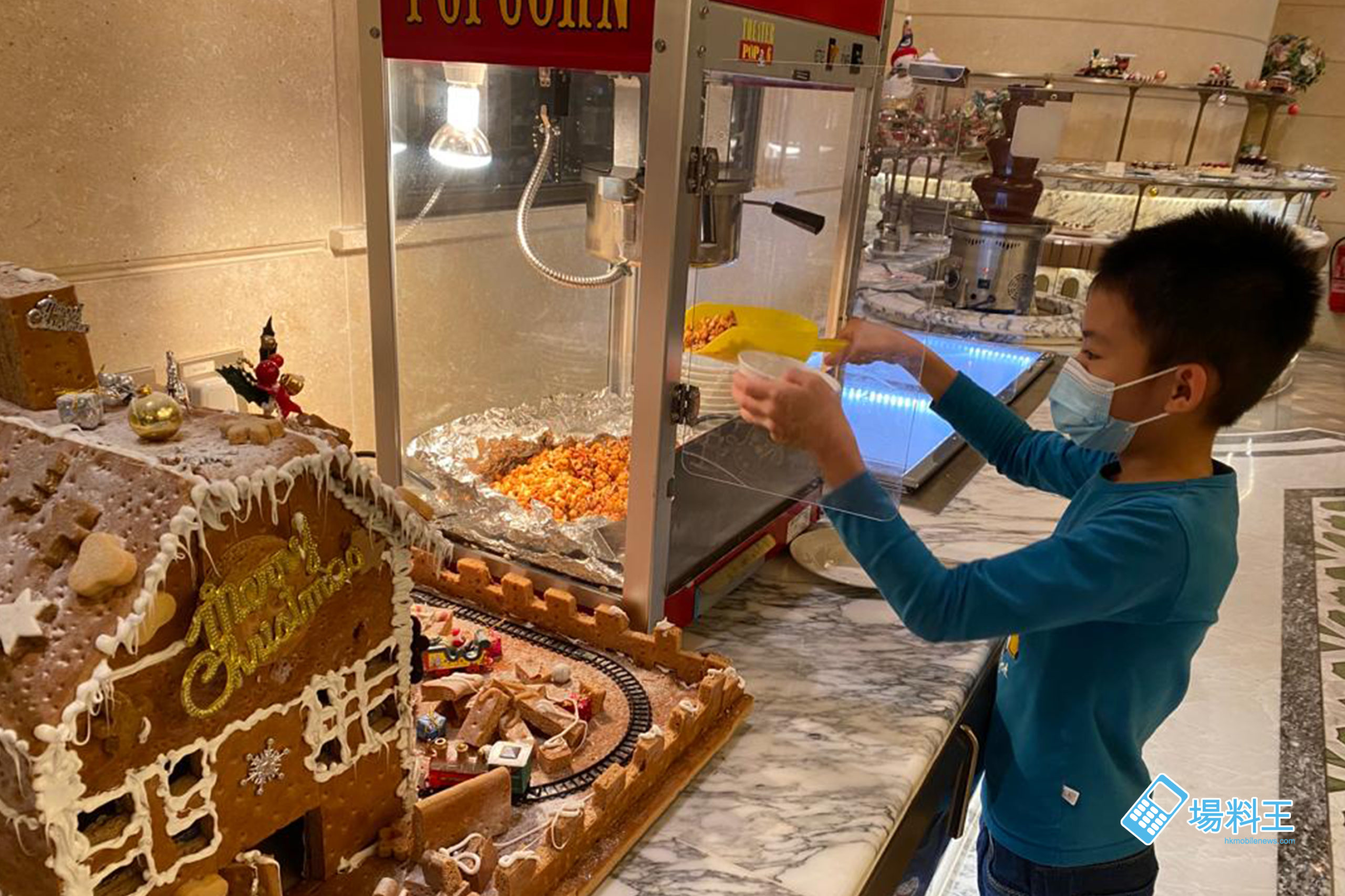因時近聖誕節,所以明顯見到一些有關的聖誕限定美食,如烤聖誕火雞、樹頭蛋糕、聖誕玉桂朱古力蛋糕、德國聖誕乾果甜包等,而且雪糕就同時提供 Haagen-Dazs 及 Movenpick 兩大品牌的雪糕,難得!就連朱古力瀑布、爆谷亦有提供,小朋友們吃得異常開心,甚為喜愛。