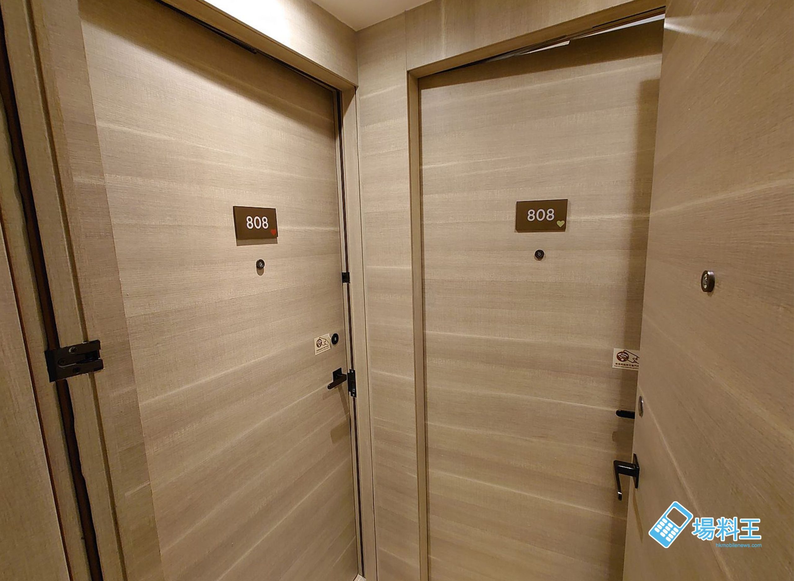 筆者今次因跟家人一家四口入住,所以選出了「紅心」套房,而所謂套房就是兩房相連,把兩間各佔 226 平方呎大的紅心客房連在一起,這房型最合兩組伴侶或 4 至 5 人的家庭入住,因在主房門(上圖)打開後,兩房各有獨立門分隔,令大家既有獨處的空間,又兼備互可溝通的共處機會。