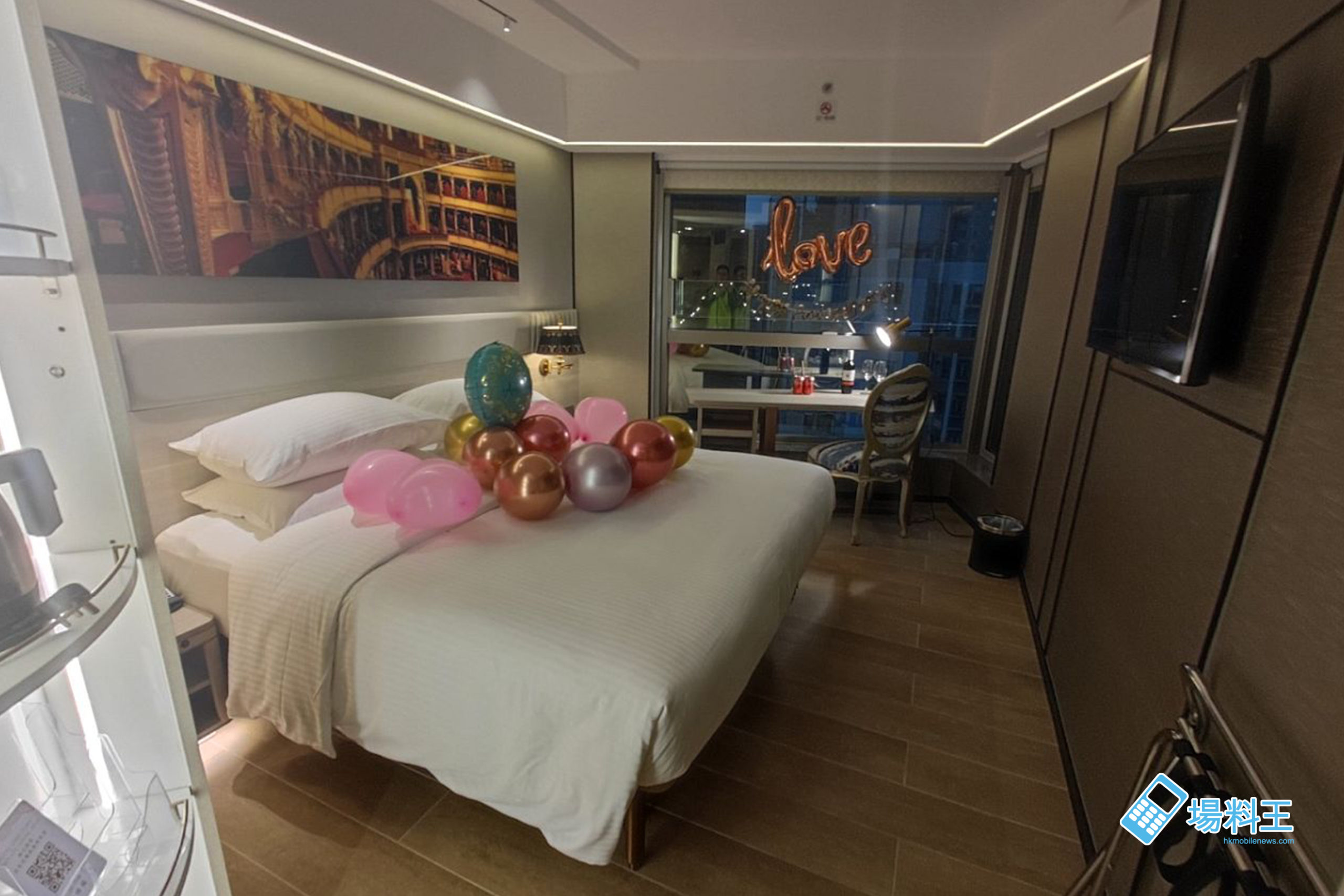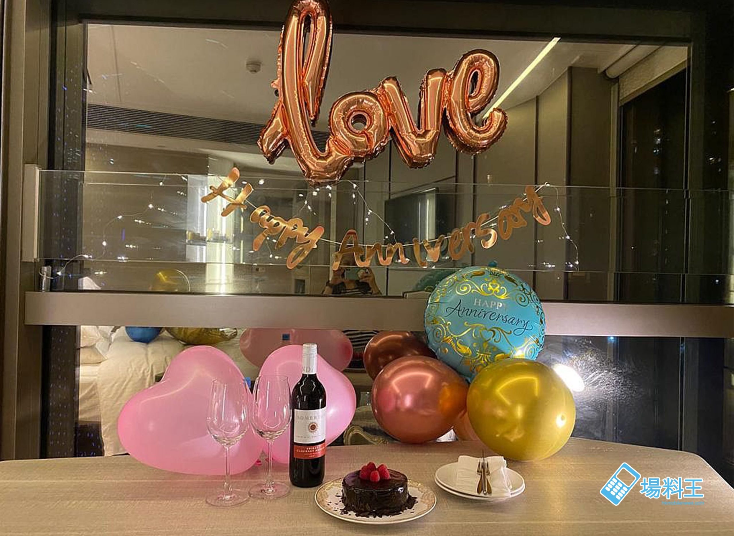 今次適逢是結婚週年慶,所以我們特別請員工幫我們佈置一番(另費),聽職員說,他們會因應如生日、週年紀念、結婚等不同的慶祝主題,為客人作相對的佈置;當中除了有可愛的氣球佈置外,還有紅酒、小蛋糕,可算設想周到,服務貼心。