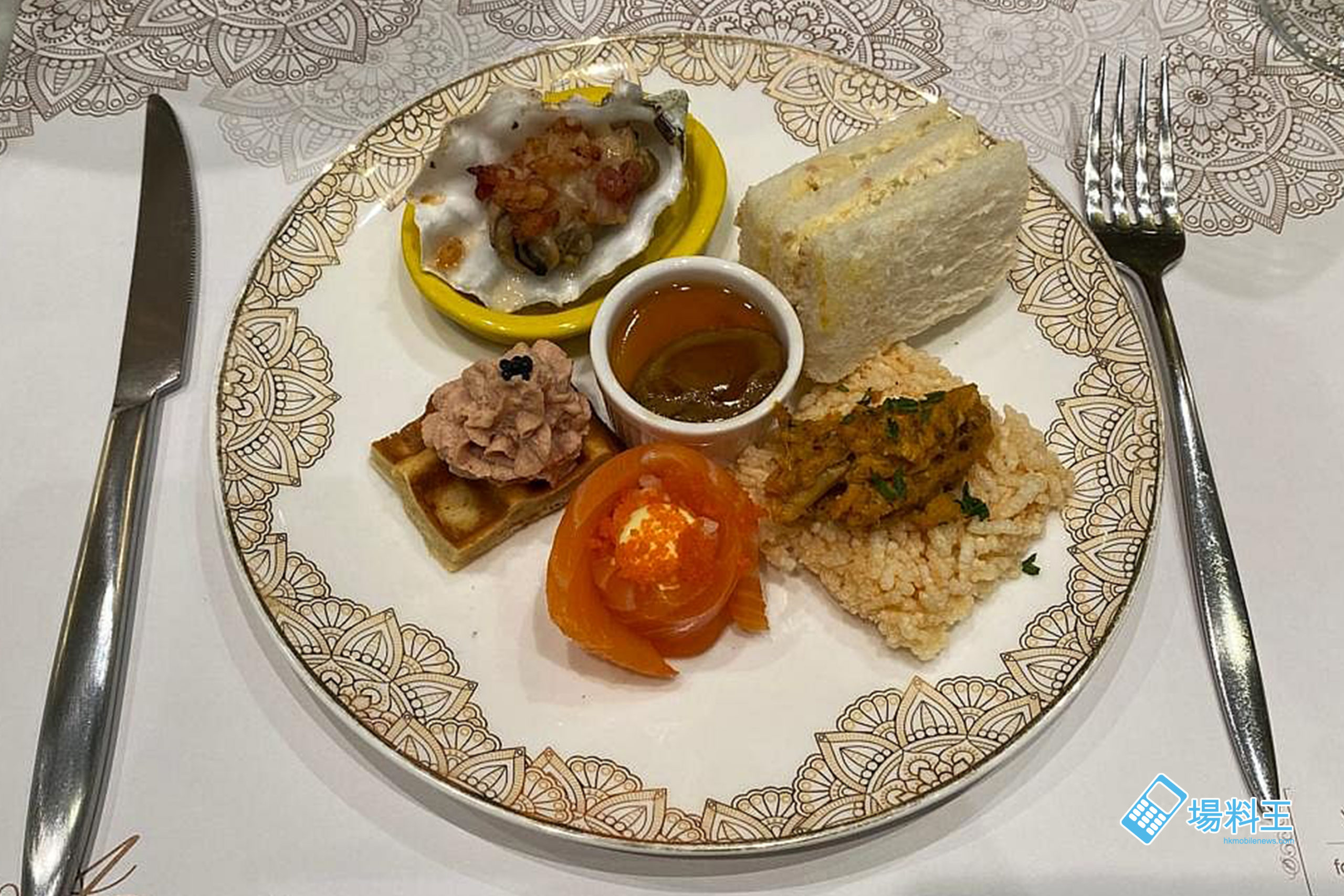 晚上到了酒店的歷山餐廳享用自助晚餐,由於樓底頗高,加上同樣採用維多利亞宮廷式設計及多盞水晶燈,用餐環境全沒侷促感。