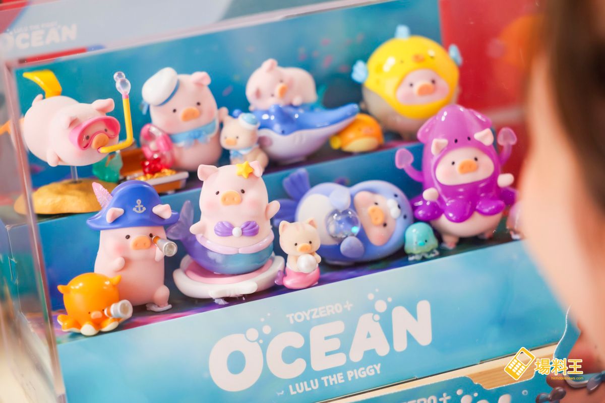 場內更有造型精美的全新海洋系列盲盒 (下圖) 及多款周邊產品,而 7 月中旬更將推出的 MOST-OLYMPIGS 活動限定「滑板天才 Lu」、「羽毛球大師 Lu」毛絨產品,午餐肉們不容錯過!